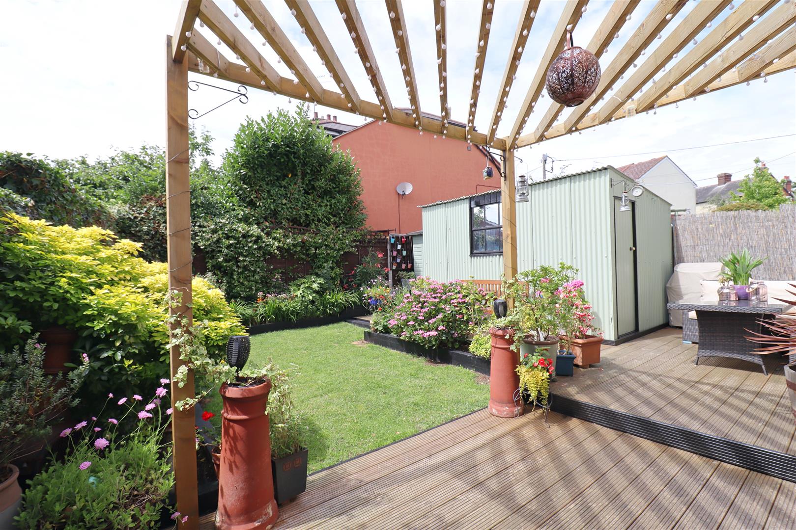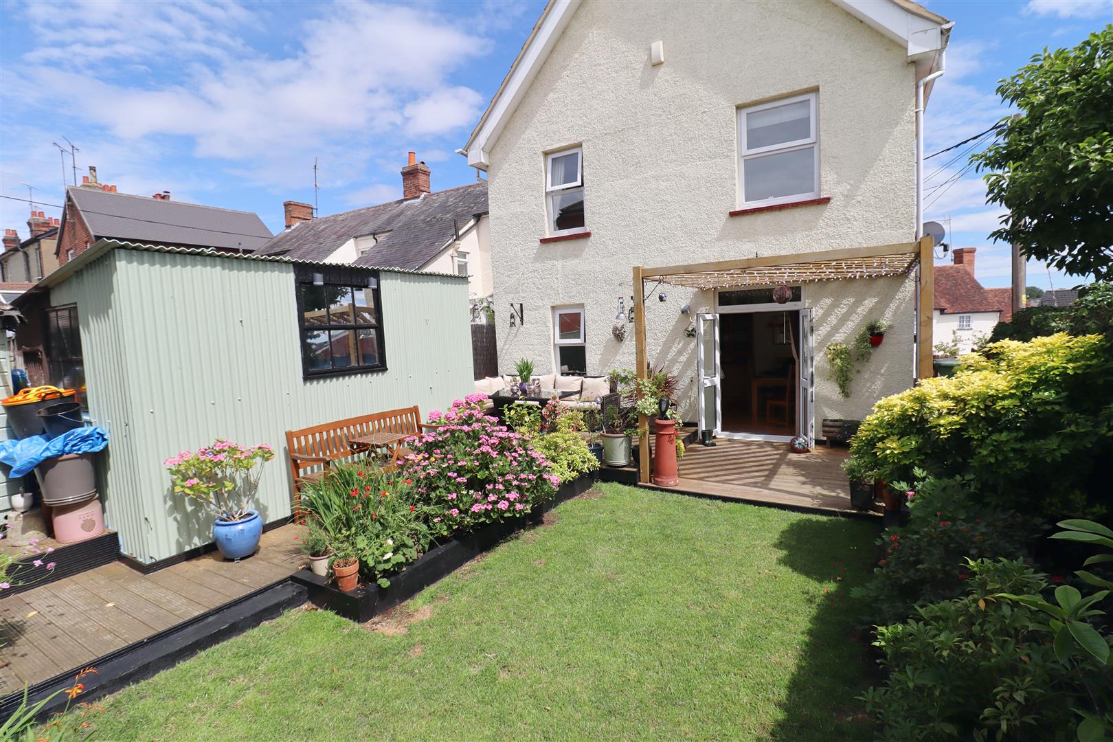 Commencing with a raised decking area, opening onto a garden laid mainly to lawn, with permanent outbuilding suitable for conversion to a work from home space or garden room. Westerly aspect meaning this property is an afternoon sun trap.