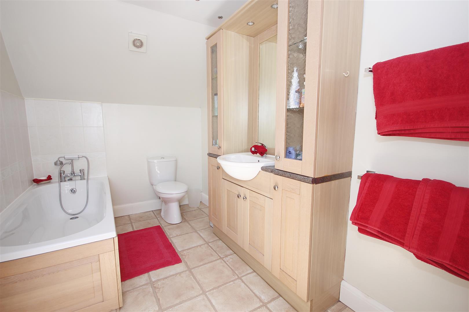 Double glazed window to front aspect, bathroom suite comprising of a bath with mixer taps, hand wash basin with vanity unit, low level WC, radiator.