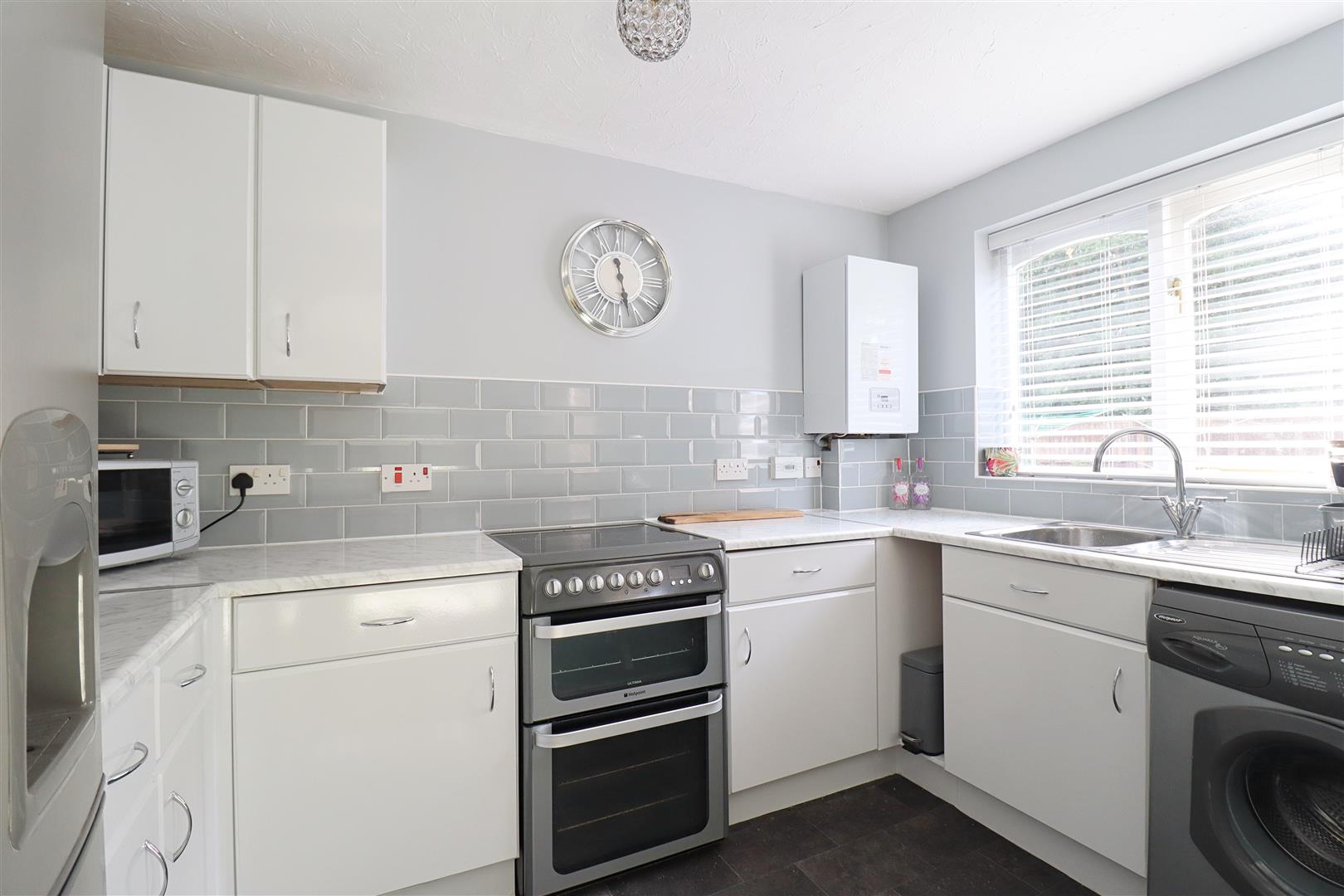 Freestanding oven, spaces for fridge freezer and washing machine. Wall mounted gas boiler, window to rear aspect.