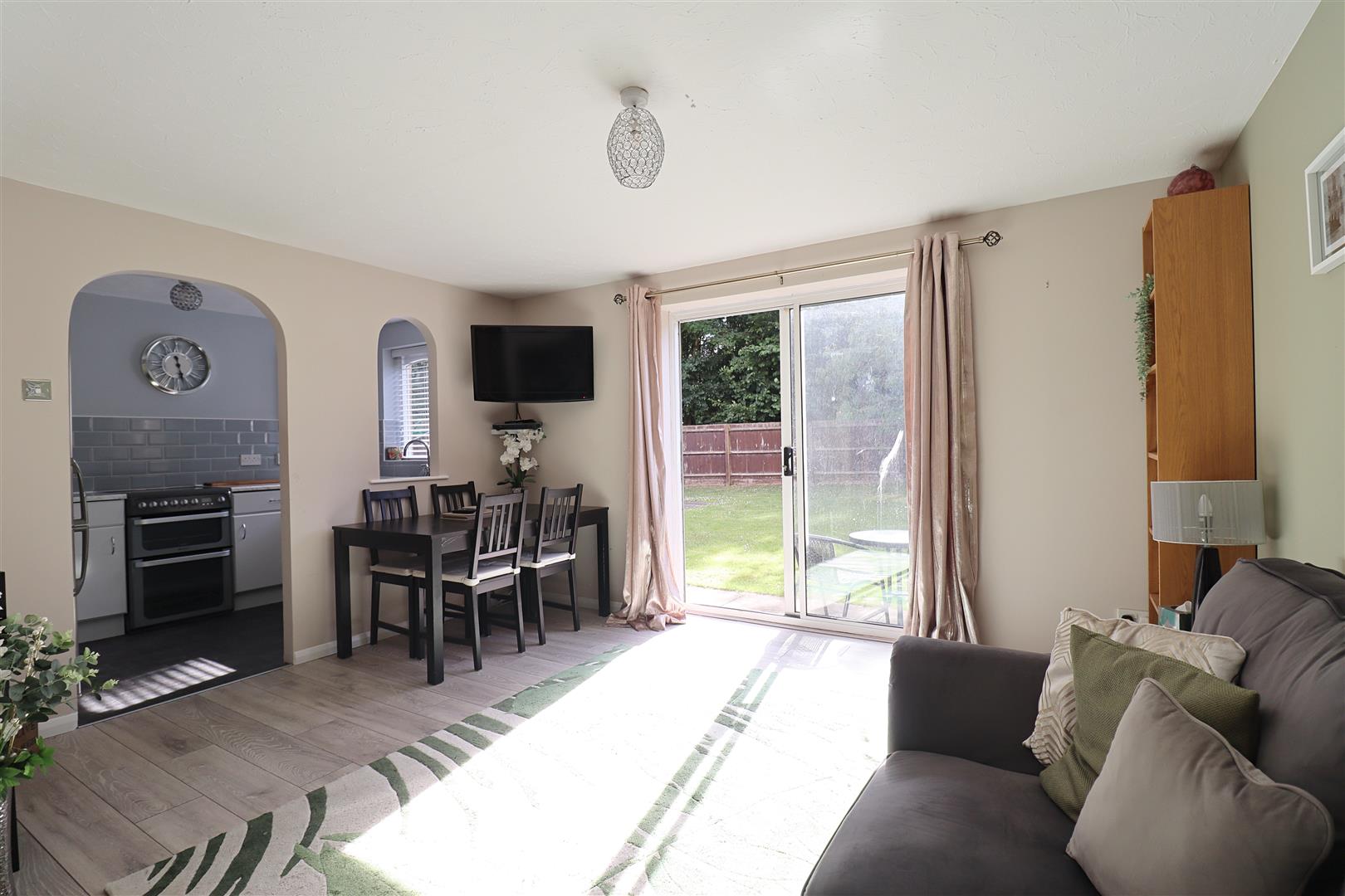 Laminate flooring, french doors to rear communal gardens, opening to;