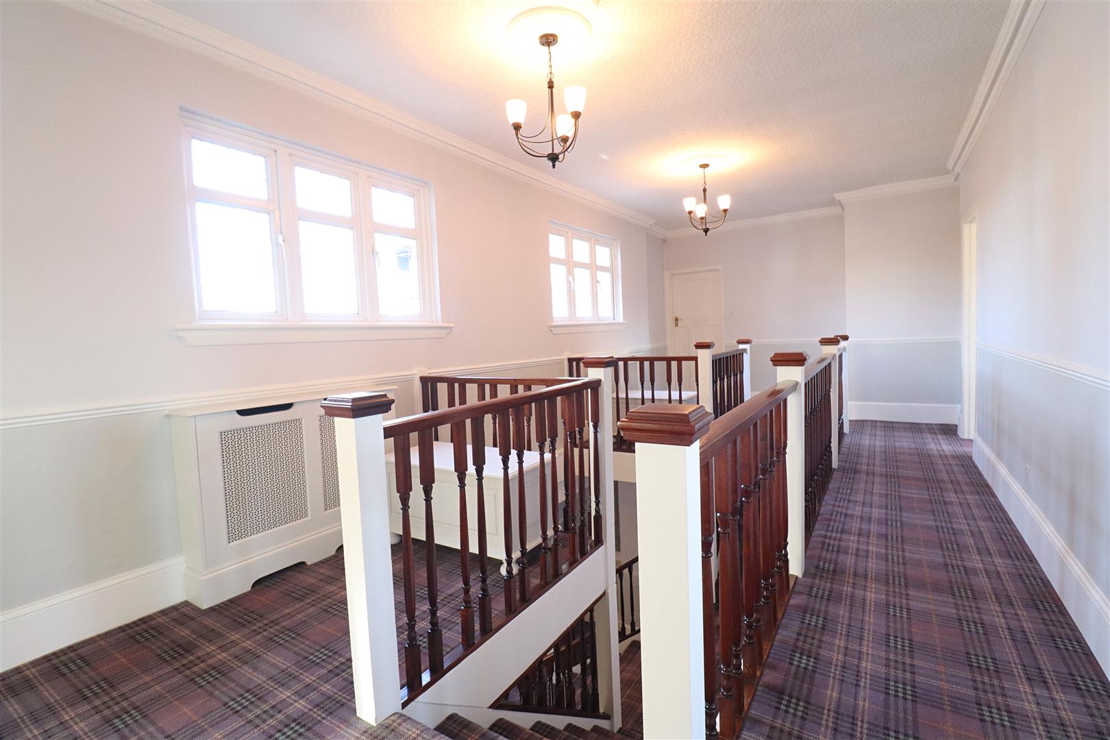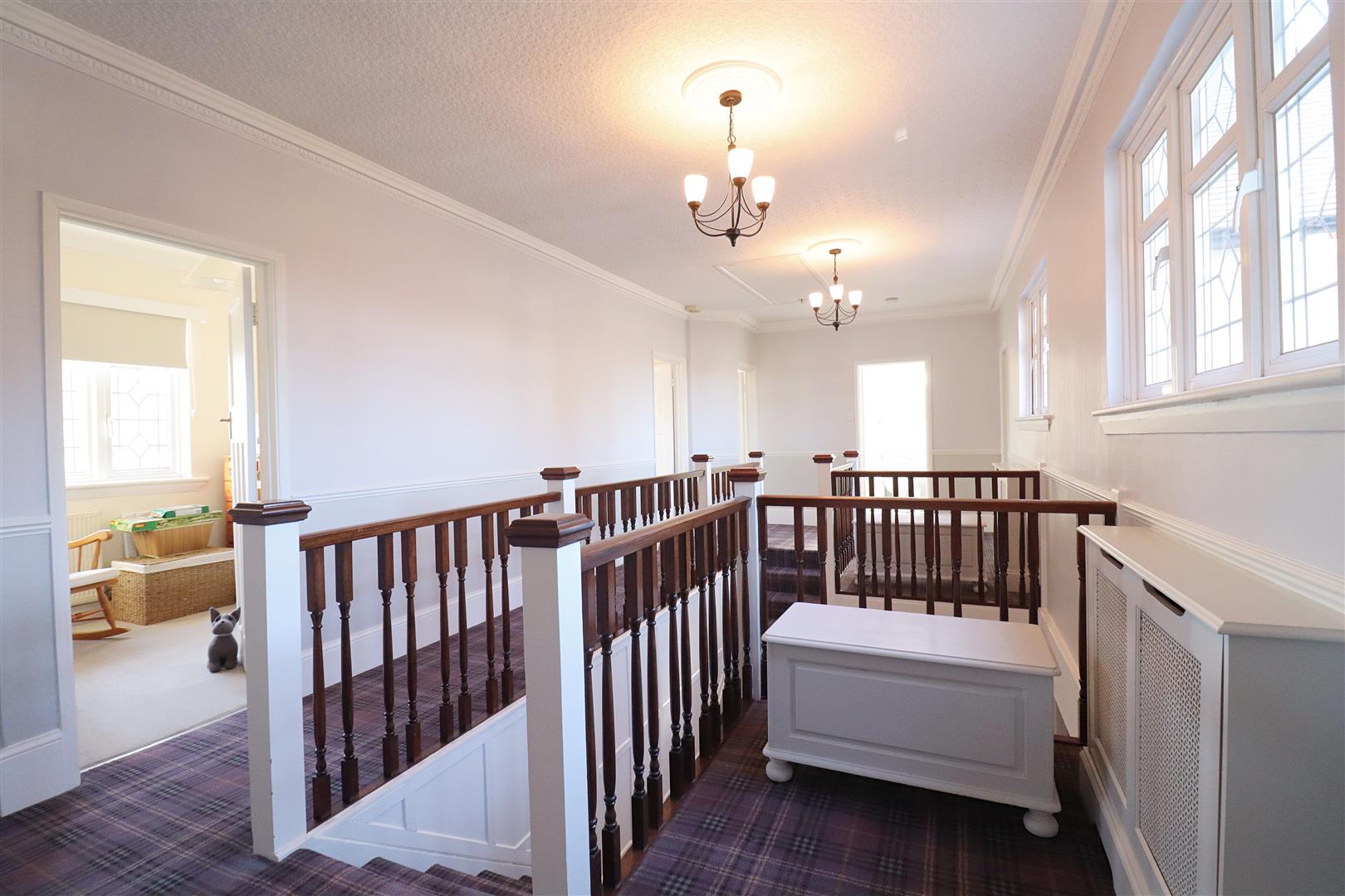 Galleried landing with carpet flooring, two double glazed windows to front aspect, two radiators, loft access, doors to;