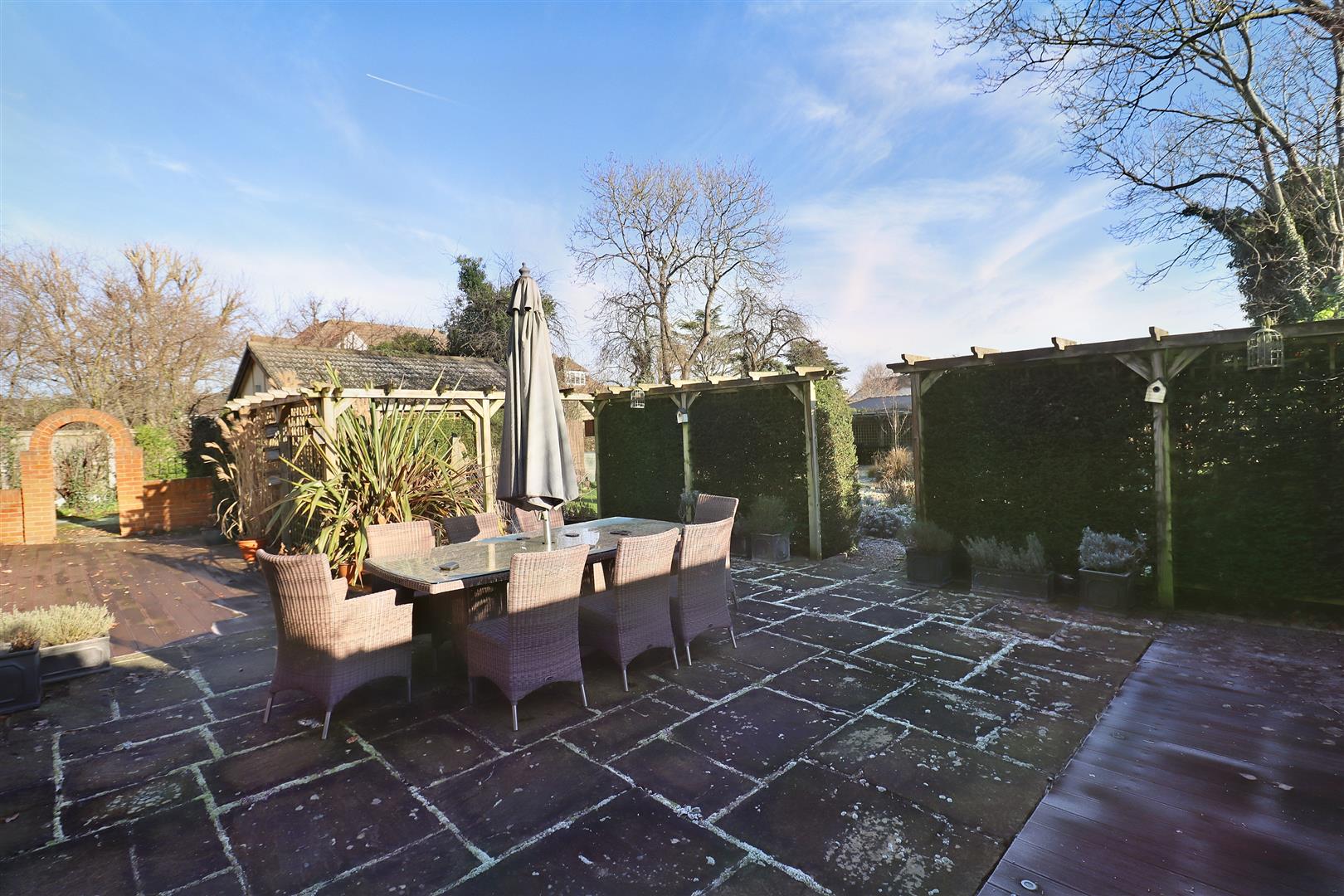Generous plot with mature landscaped gardens, paved patio areas to both lower & upper gardens, fitted pergola, gardens to lawn, range of flower beds & planting areas.