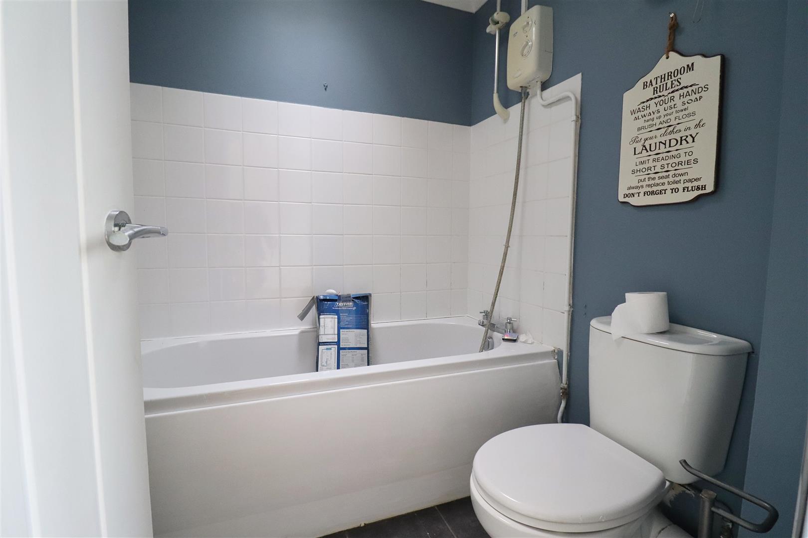 Bath with shower over, hand wash basin, WC