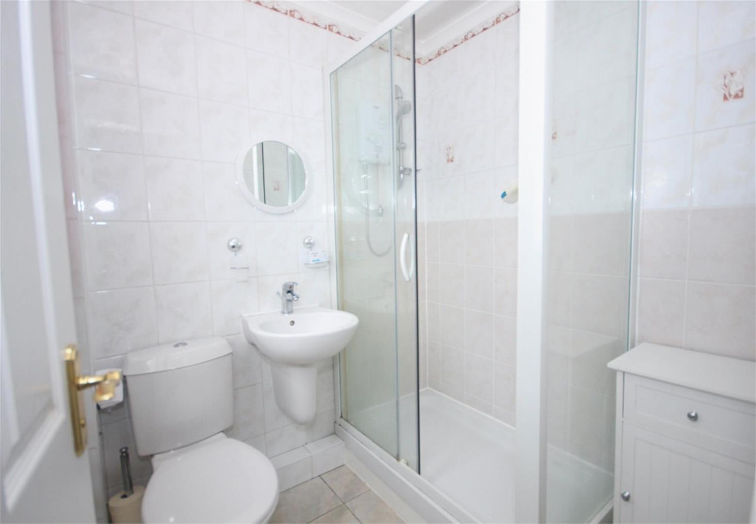 Tiled Flooring, WC, Wall Mounted Sink, Double Shower Cubicle, Tiled Walls, Obscure Window to Front, Radiator.