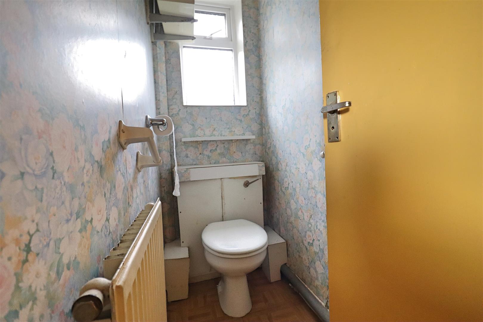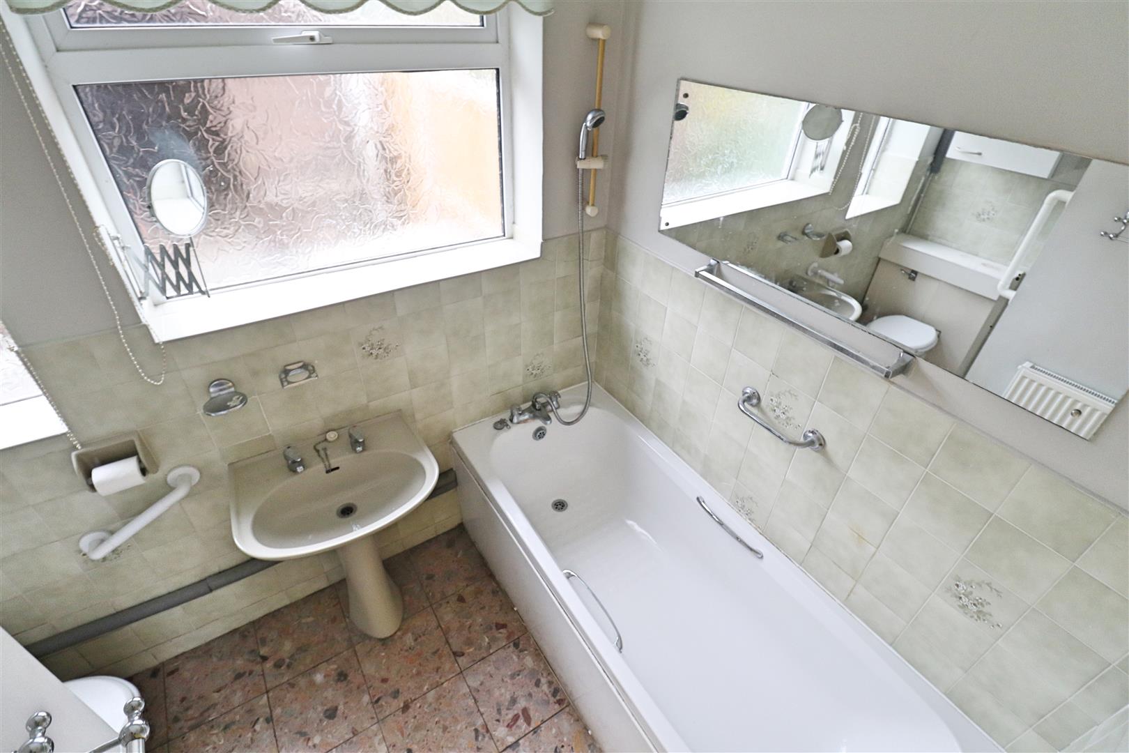 Bath, hand wash basin, WC, obscure window to rear aspect