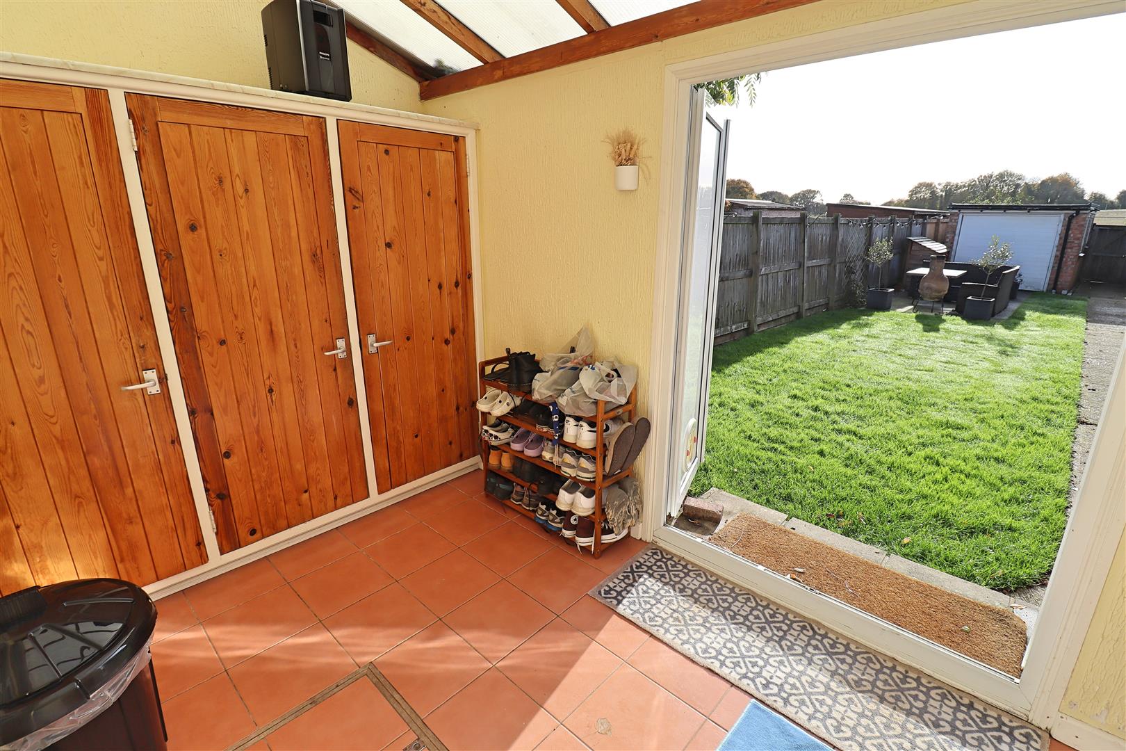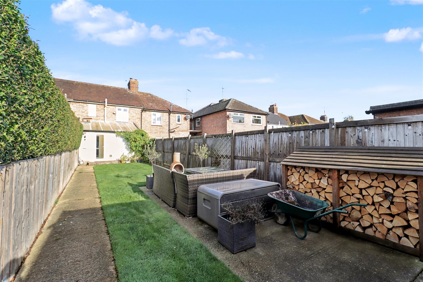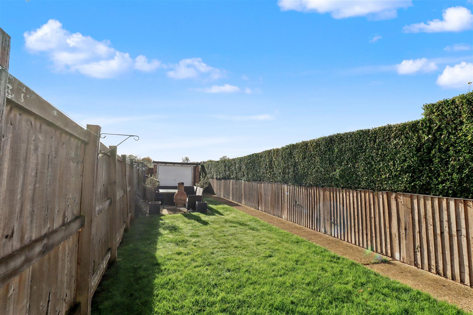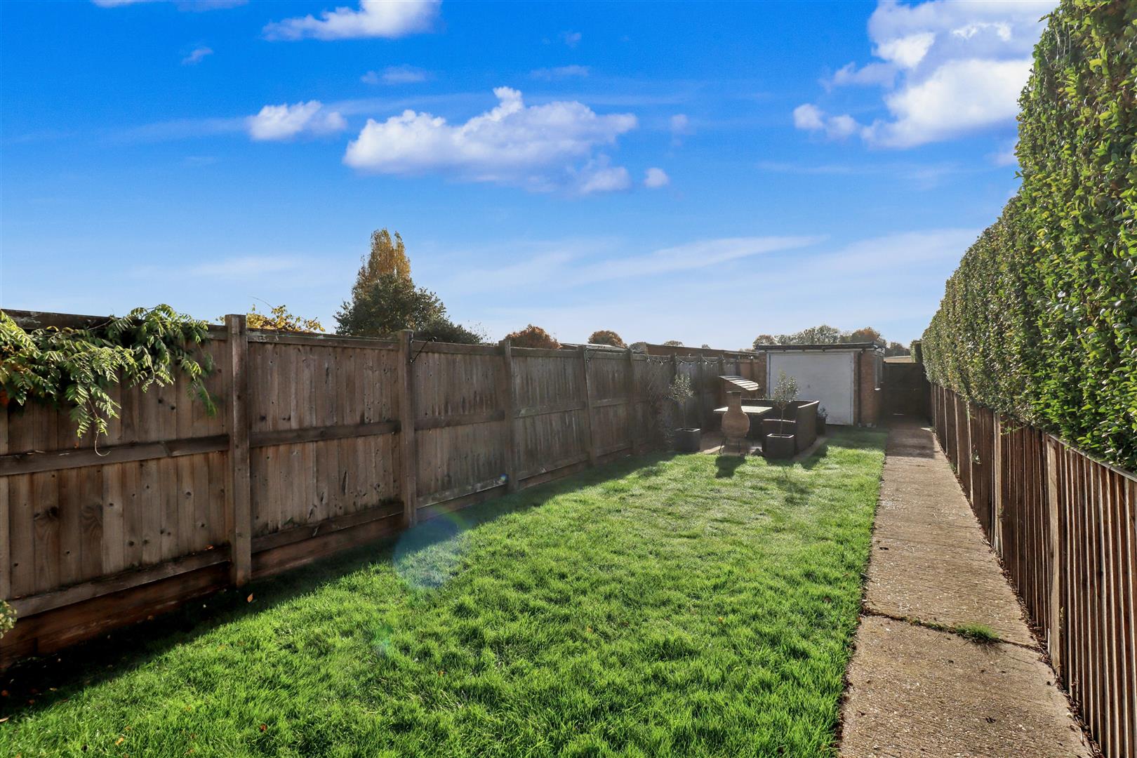 Generous garden laid to lawn, path to side, access to garage, side access gate.