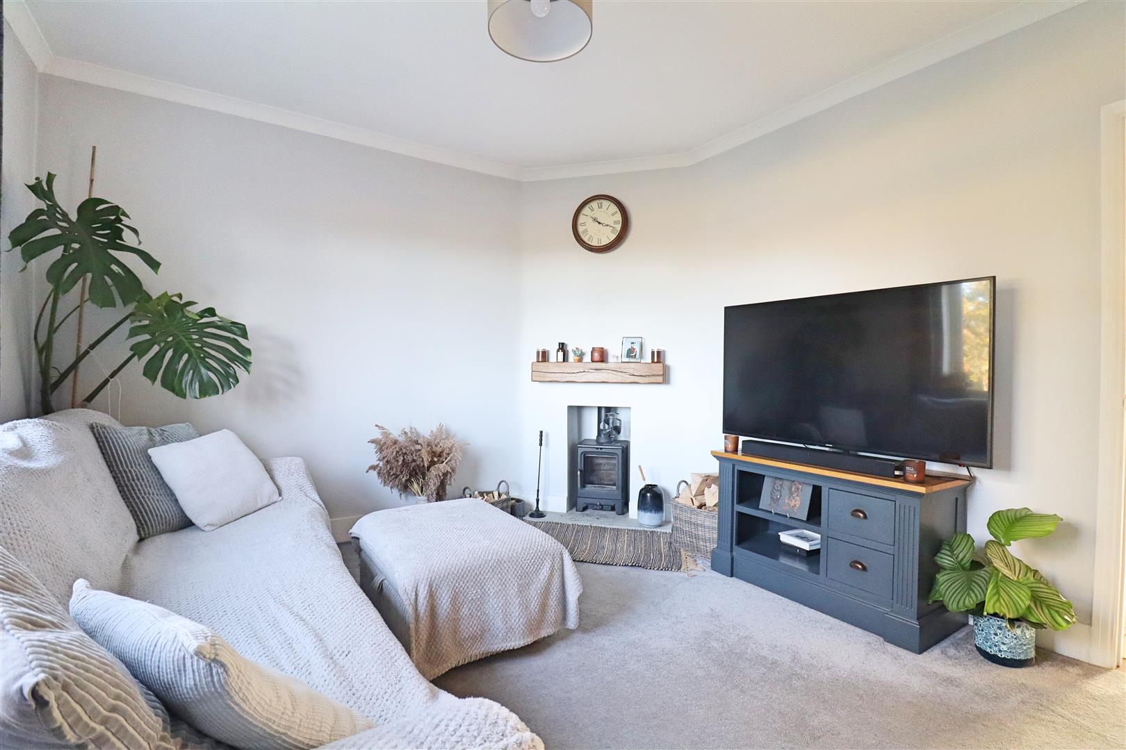 Carpet flooring, double glazed window to front, radiator, log burner, door to;
