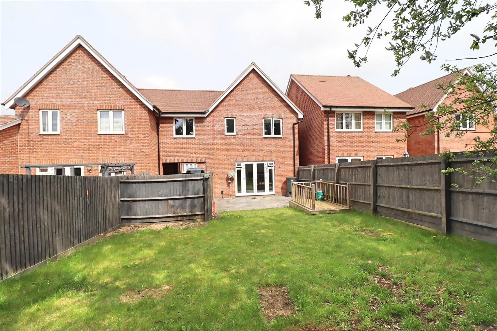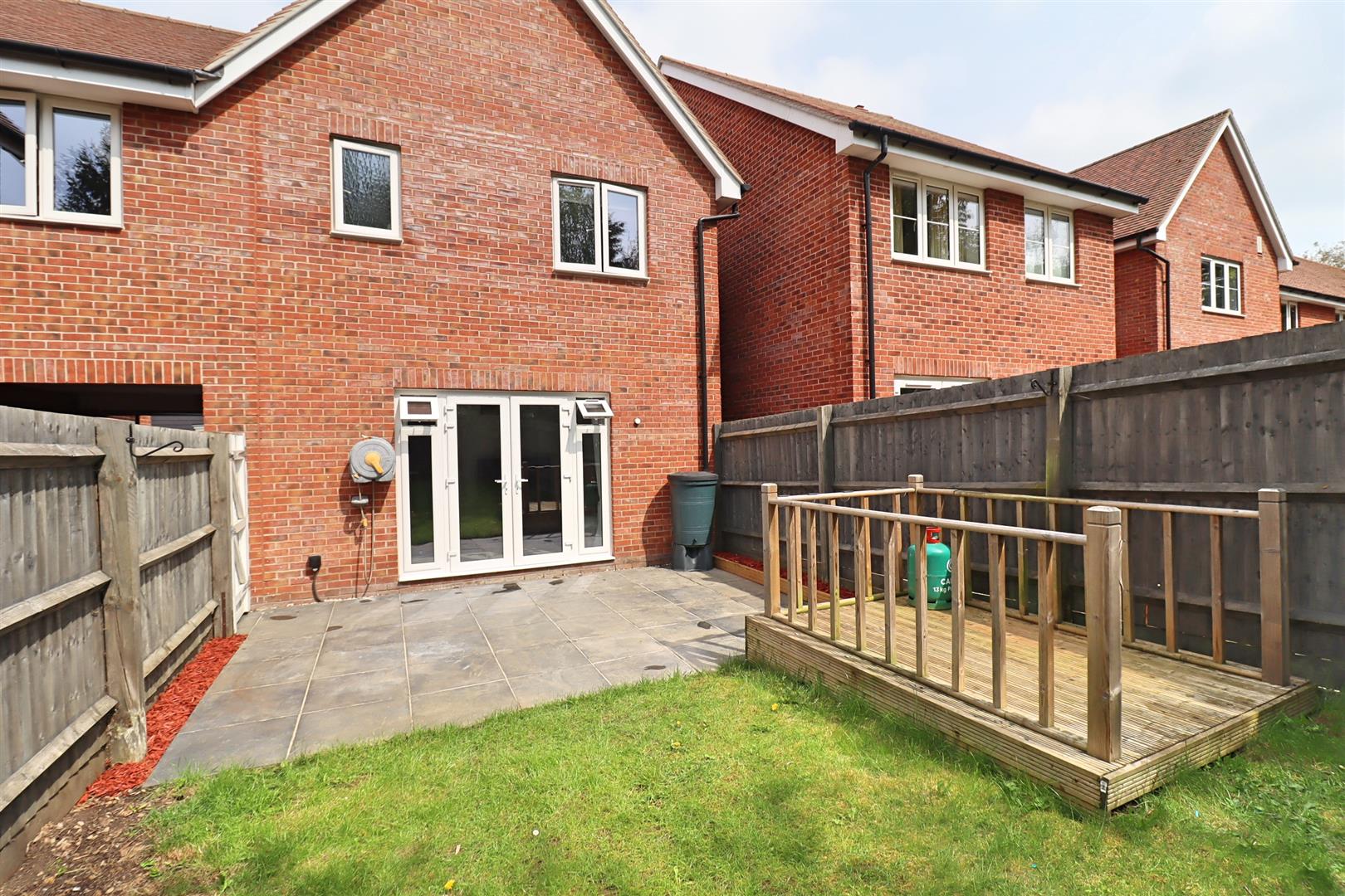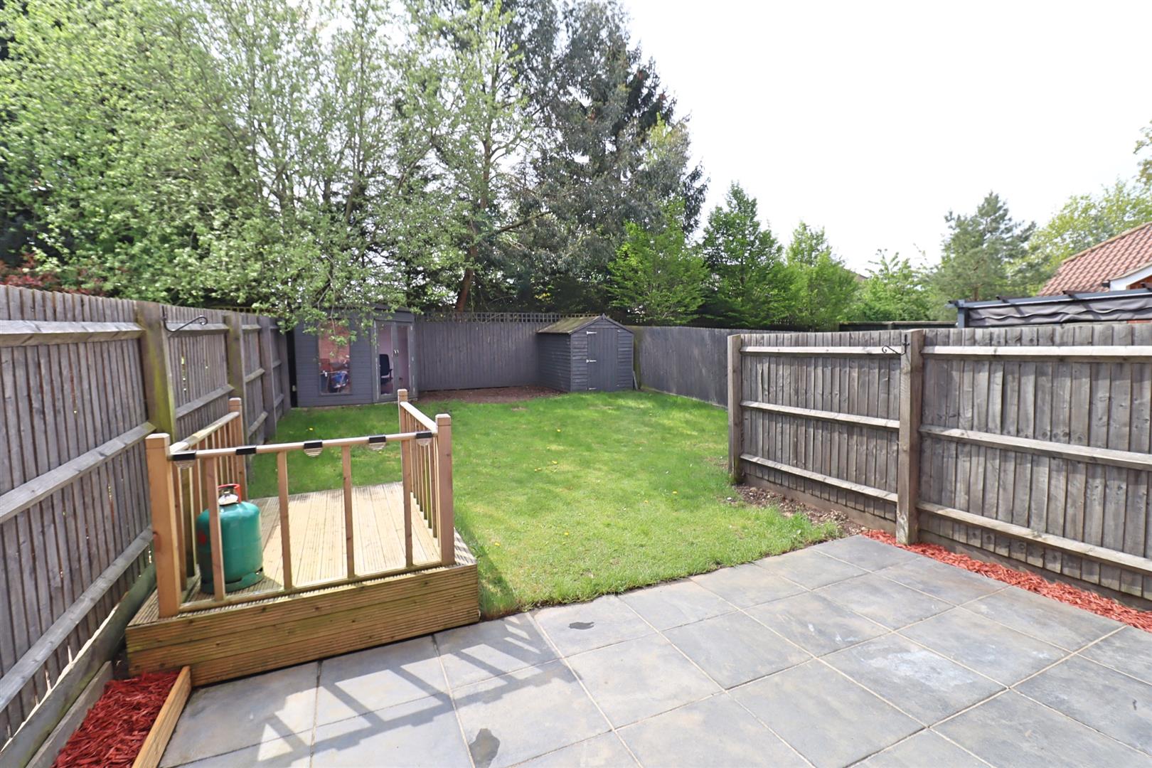 Fully enclosed rear garden commencing with paved patio area, remainder laid to lawn with raised deck area, side access gate.