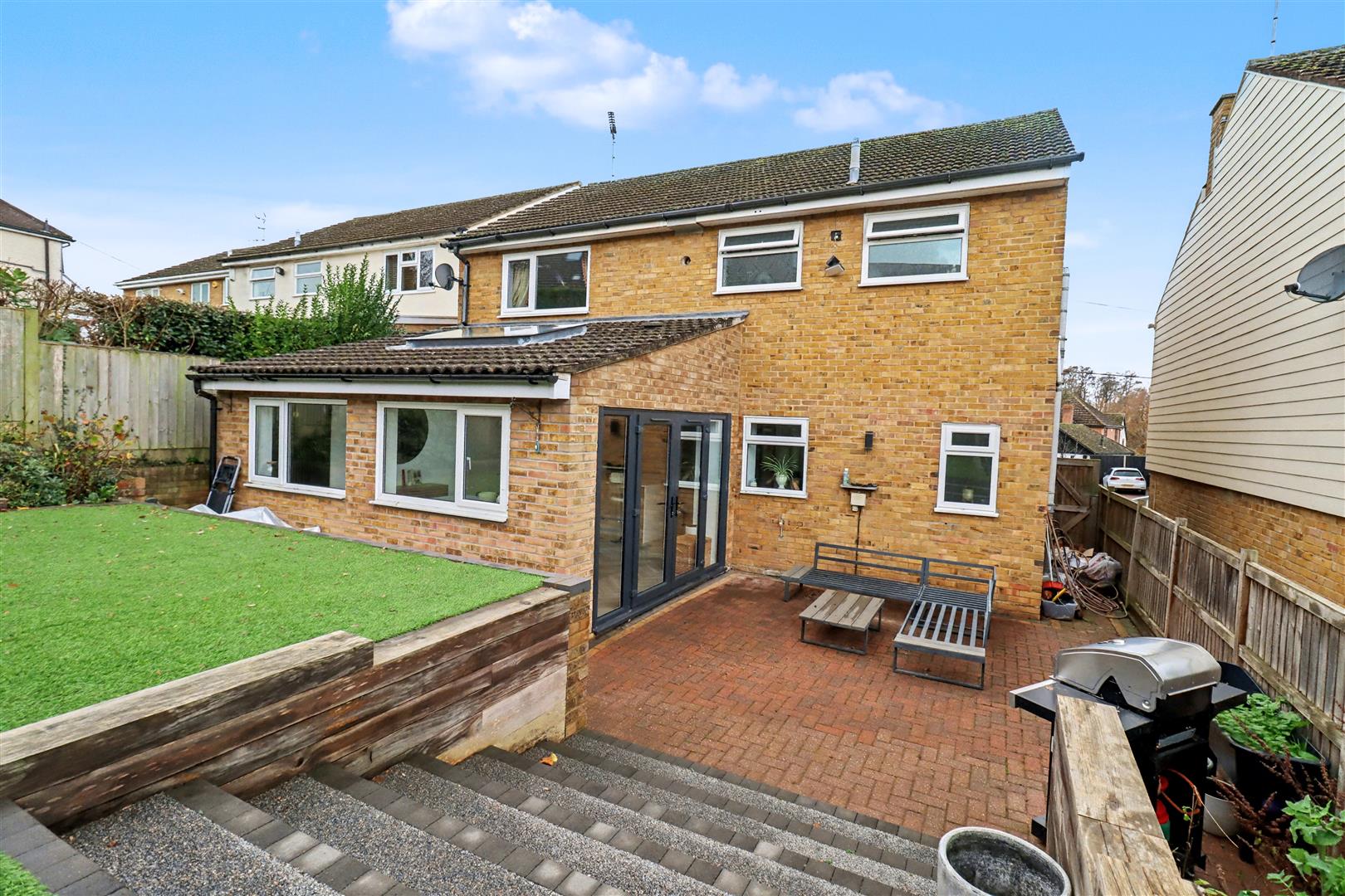 Externally, the LANDSCAPED REAR GARDEN has been cleverly designed to provide perfect areas for relaxing, entertaining and family play. Low-maintenance ARTIFICIAL LAWN and MATURE PLANTED BORDERS ensure the garden remains both practical and attractive.