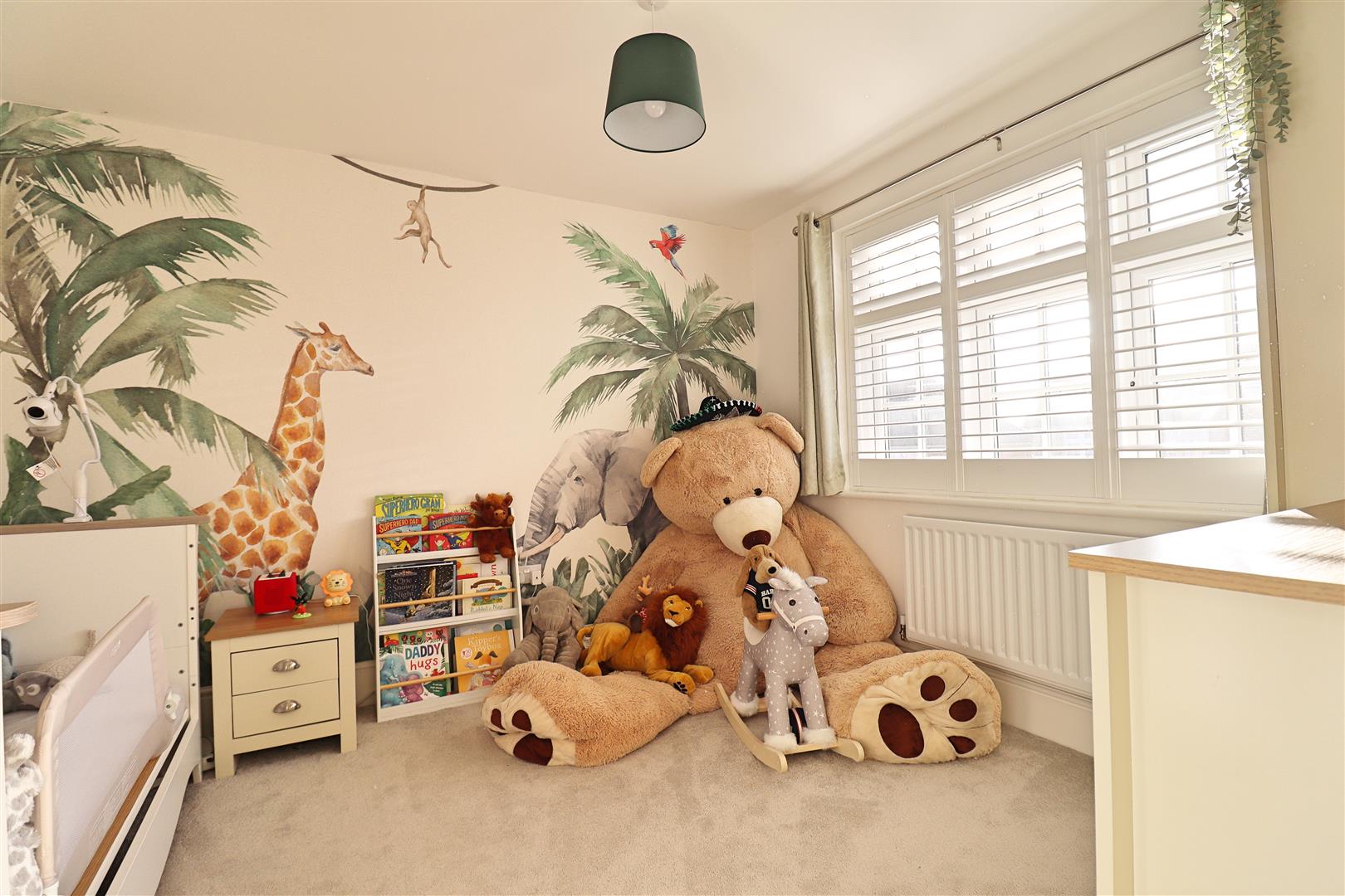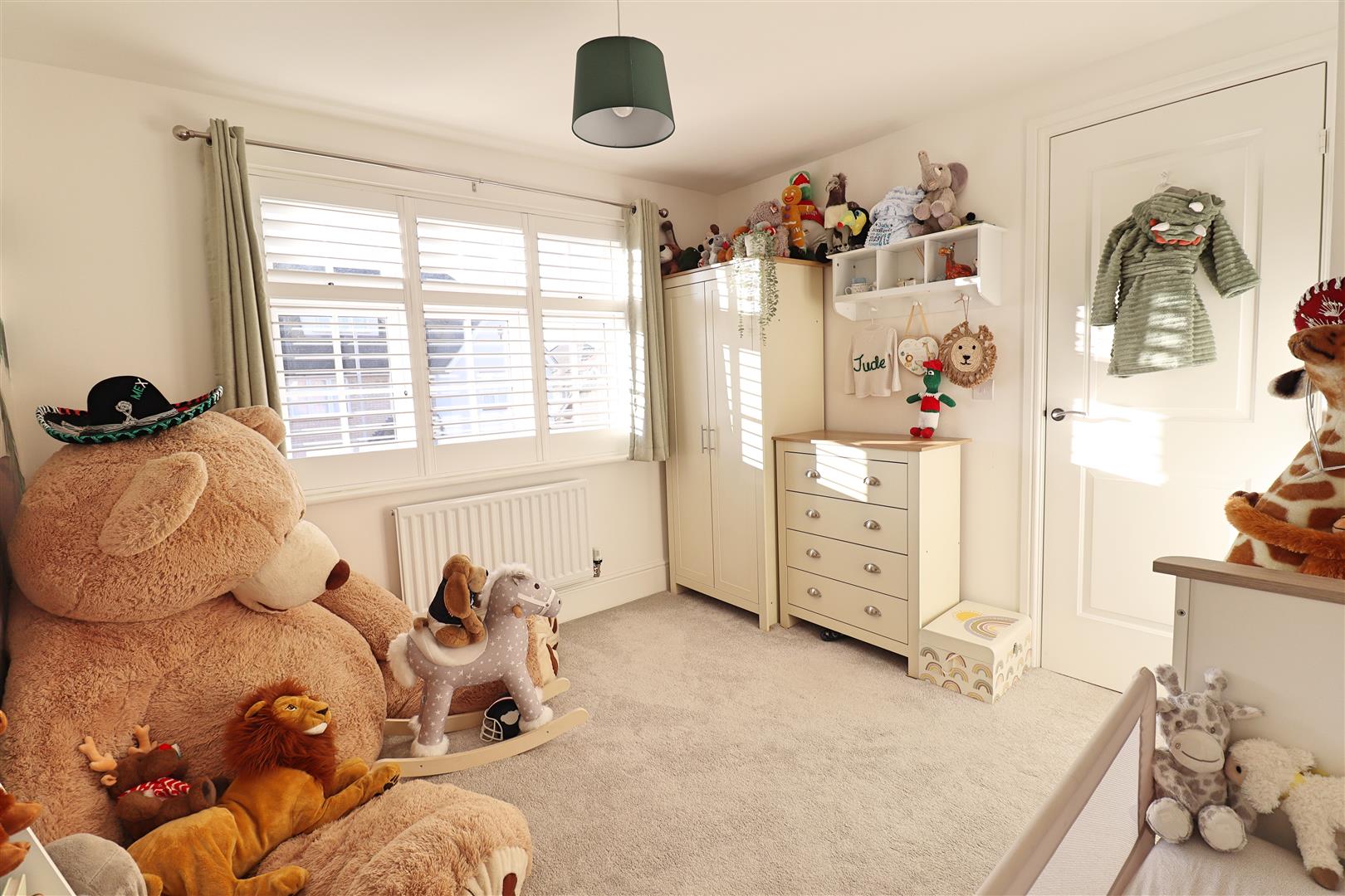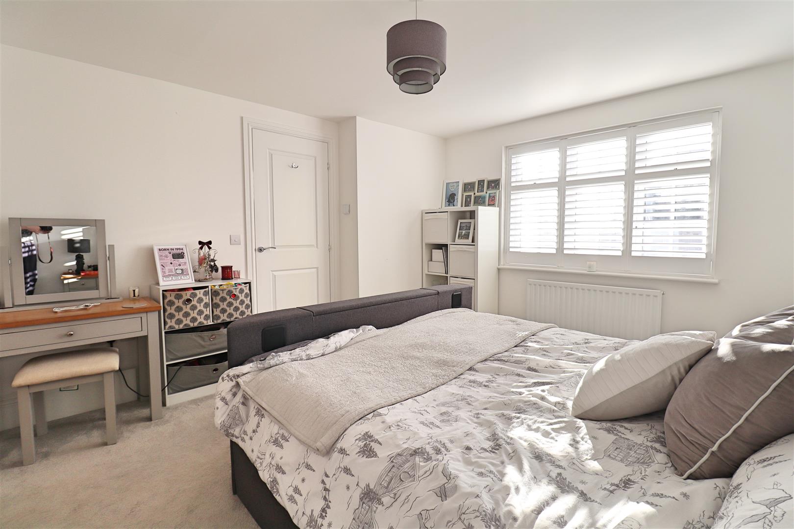 Carpet flooring, radiator, window to front