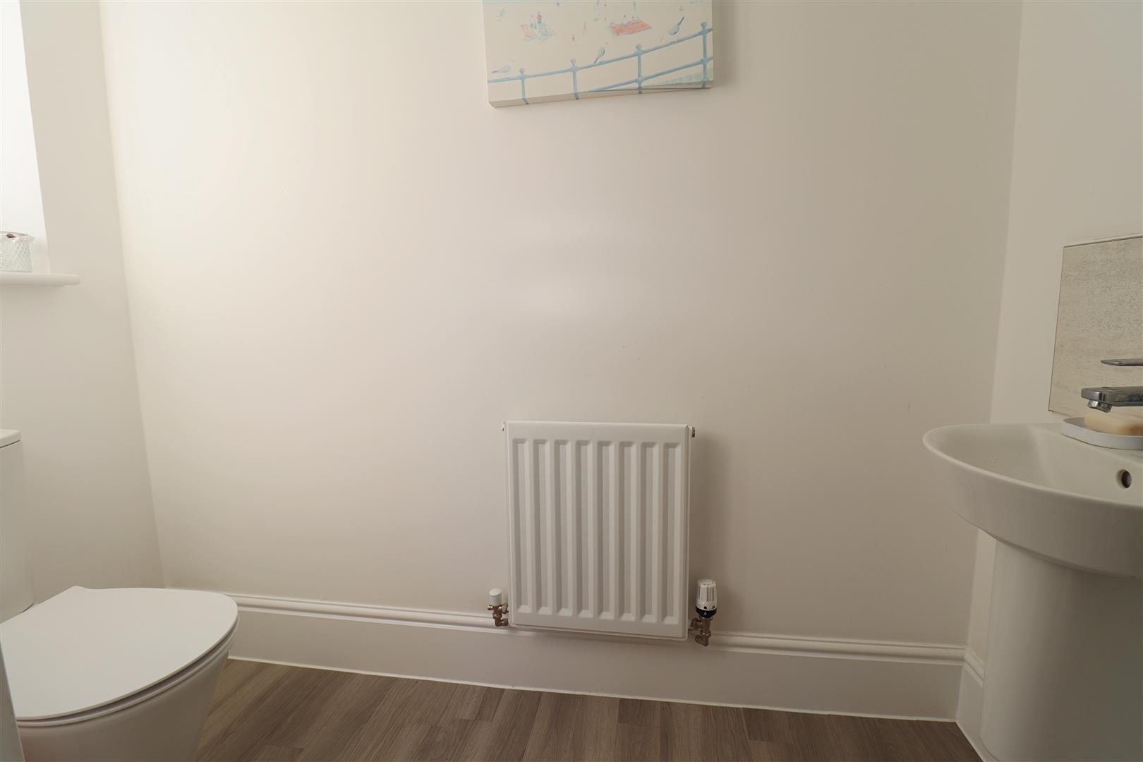 Amtico flooring, hand wash basin, WC, radiator, obscure double glazed window to side.