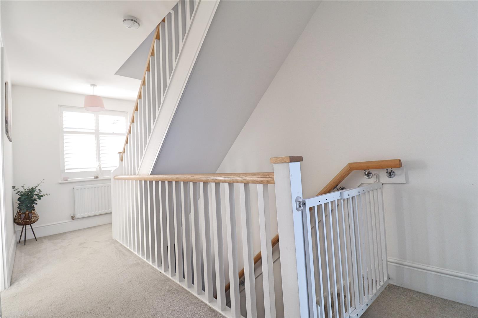 Carpet flooring, airing cupboard, double glazed window to front, stairs rising to second floor, doors to: