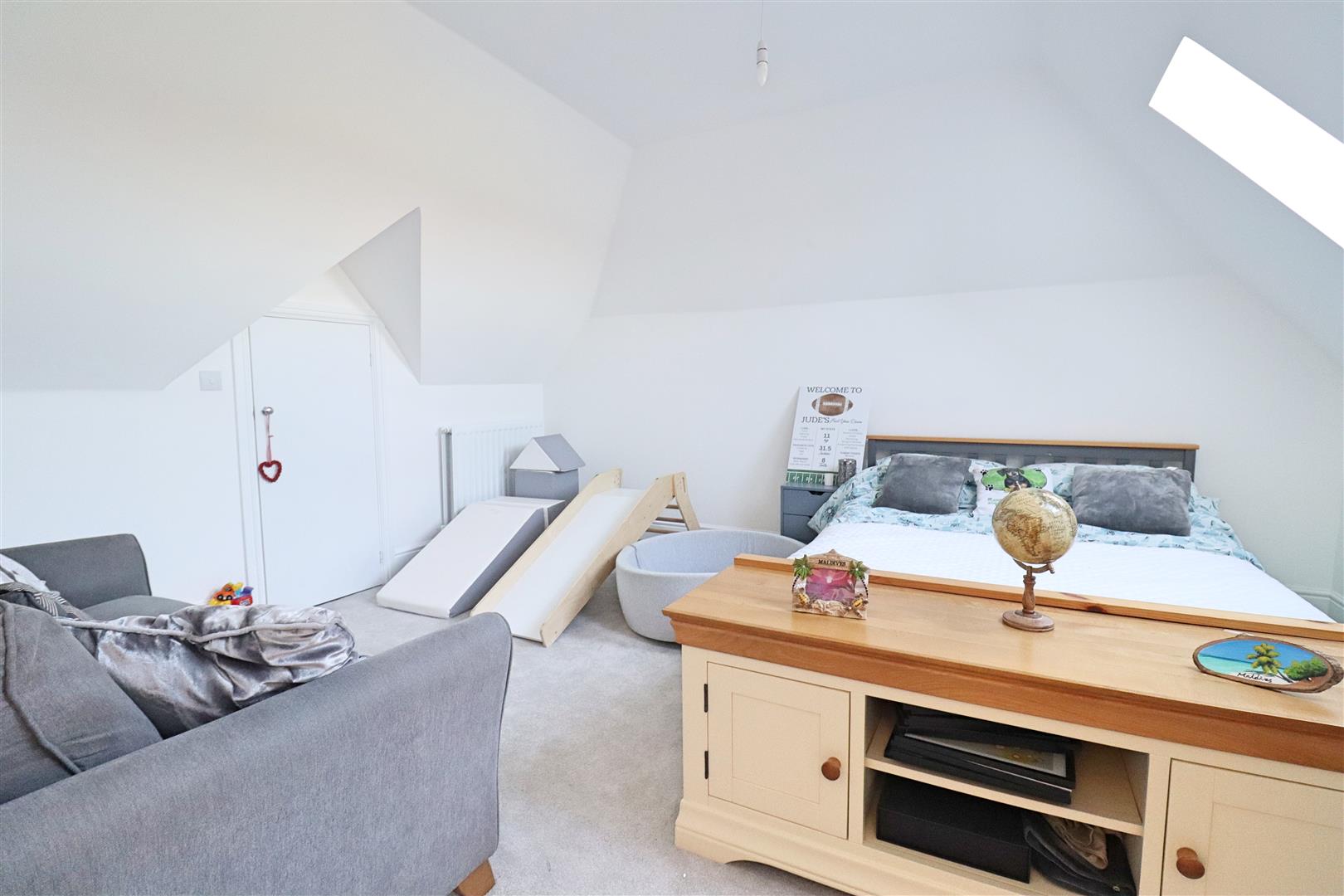 Carpet flooring, radiator, two velux windows to rear, large storage cupboard