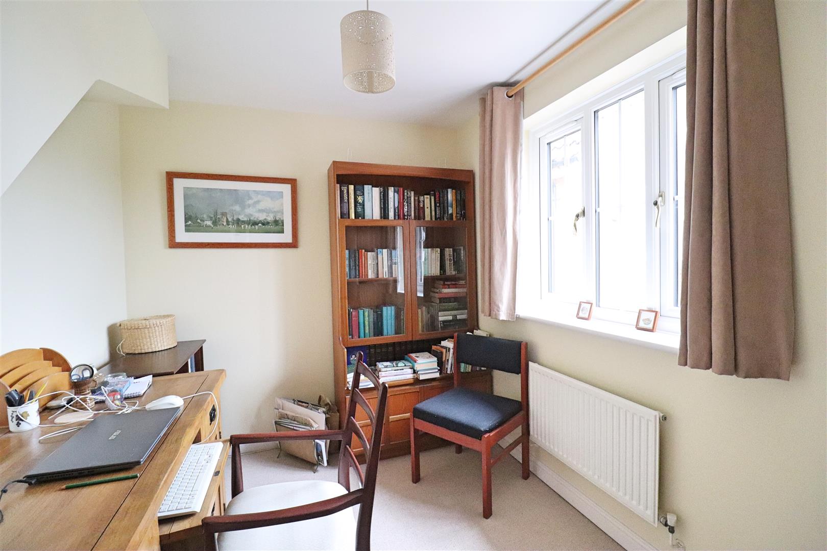 Carpet flooring, radiator, two double glazed windows to rear, velux window to front, eaves storage cupboard.