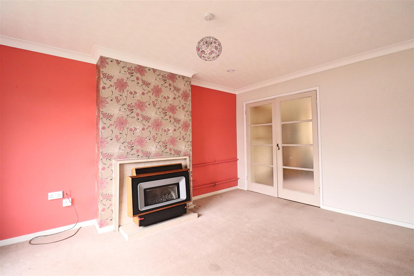 Carpet flooring, window to front, back boiler, french doors to;