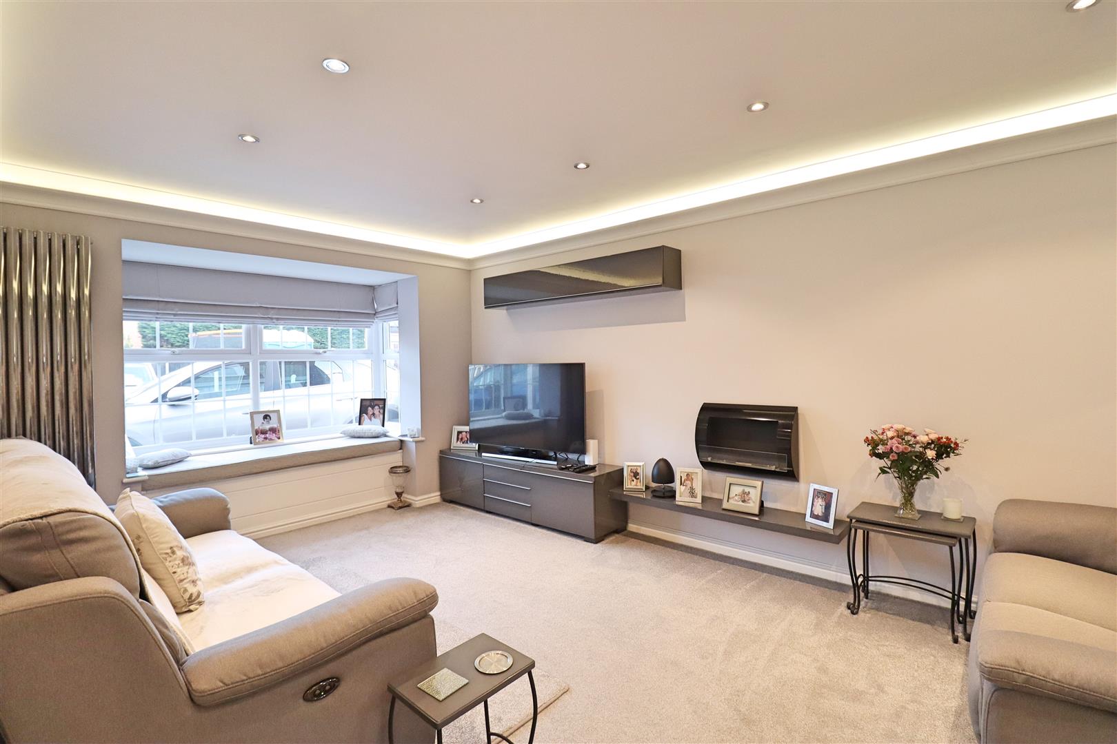 Carpet flooring, radiator, double glazed bay window to front, TV point, opening to;