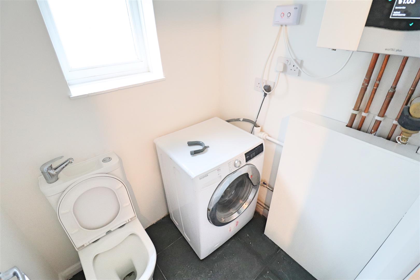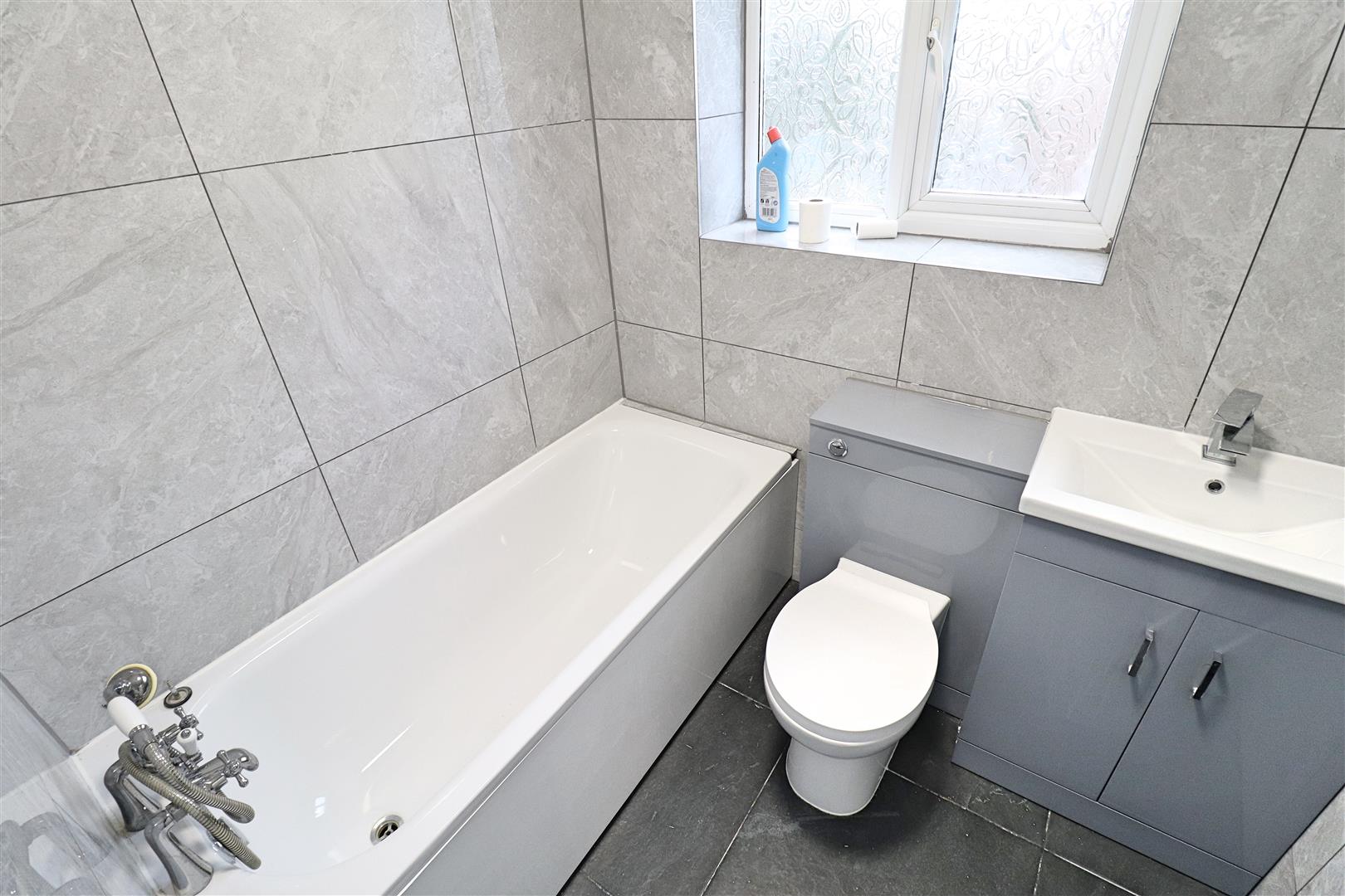 Bath with shower over, WC, hand wash basin, window to side aspect