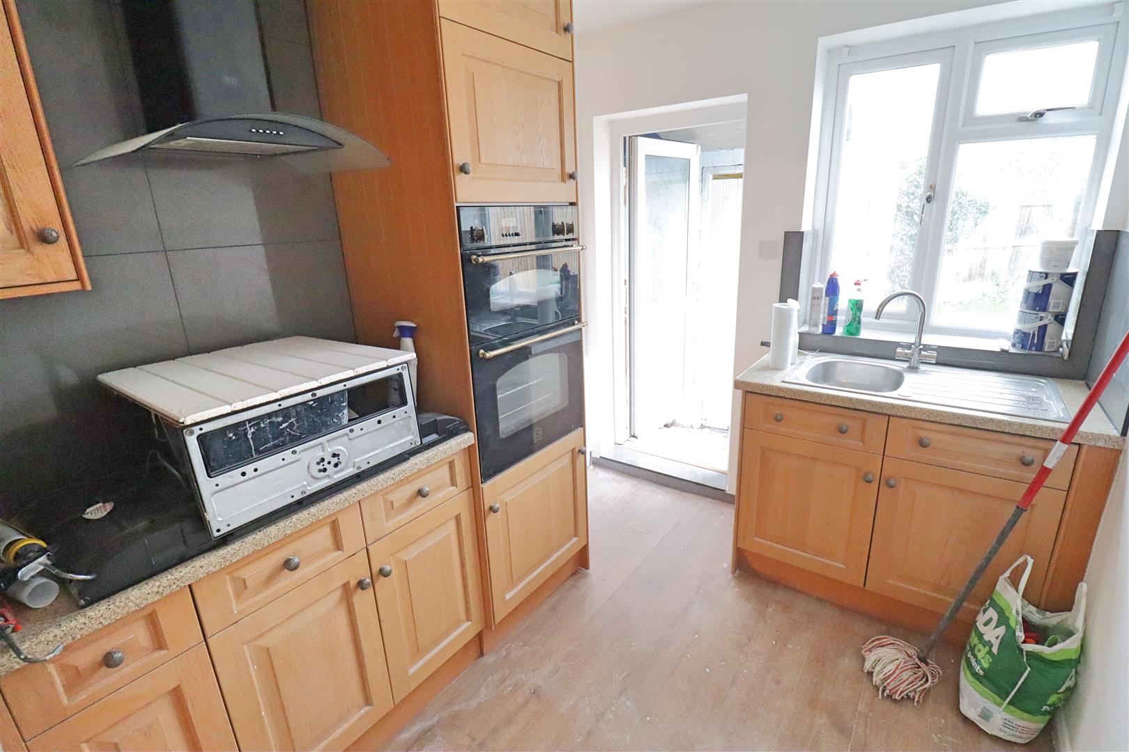 Patio doors to rear aspect, wall and base units with inset sink, integrated oven & hob