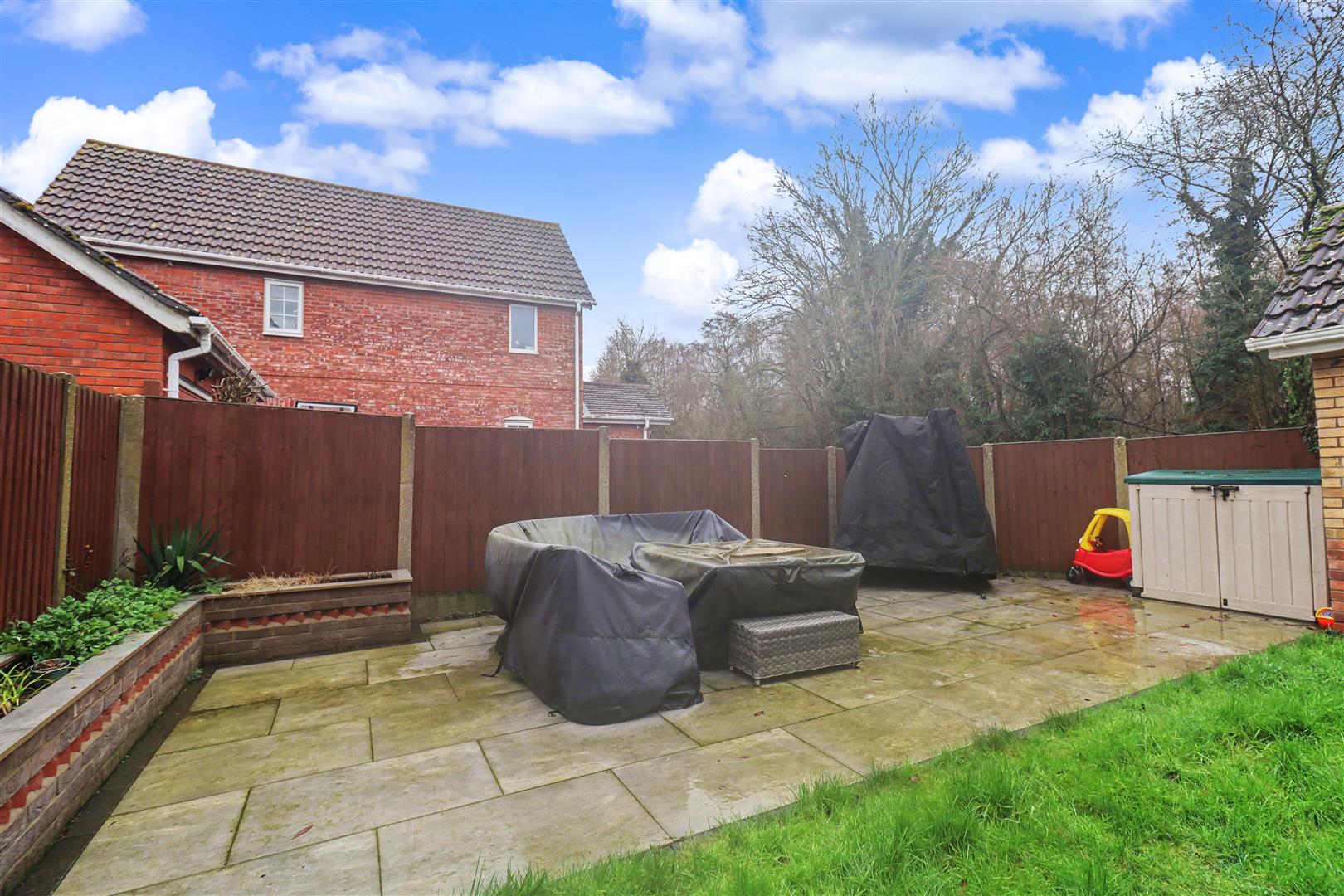 Commencing with a raised decking seating area with a further paved patio area to the rear, remainder laid to lawn, side gate, enclosed by panel fencing.