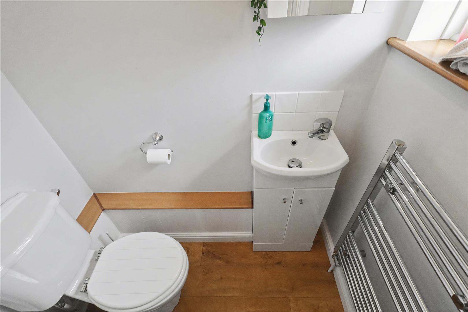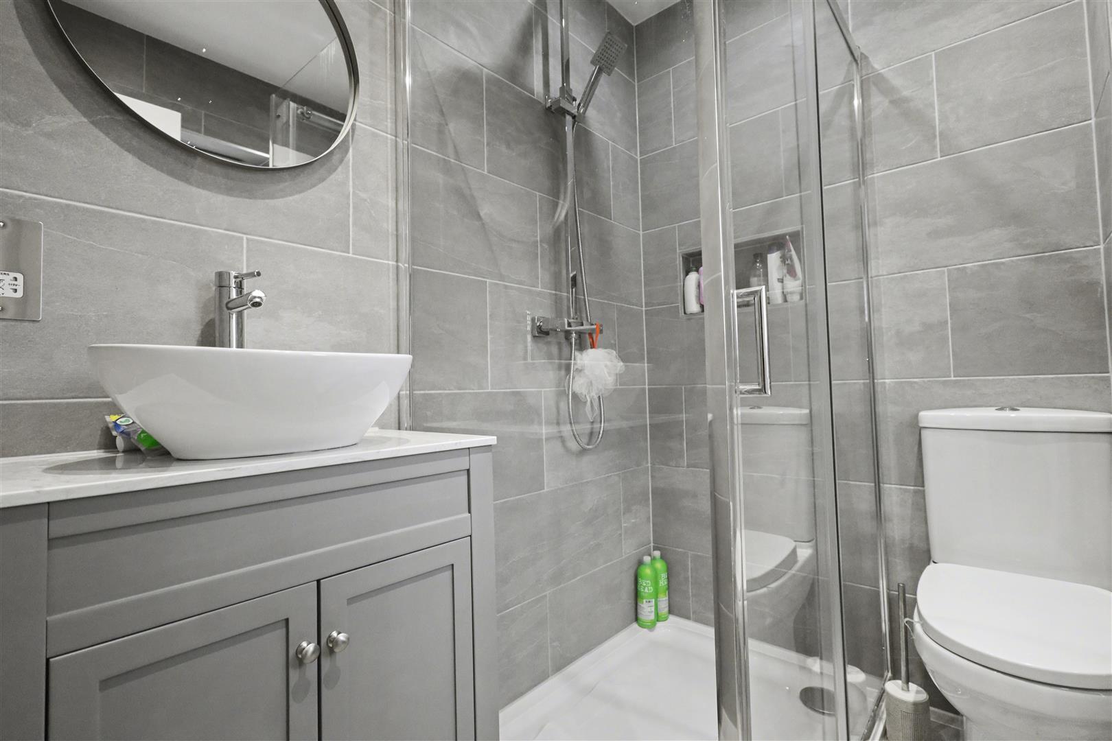 Shower enclosure, WC, hand wash basin, obscure window to front