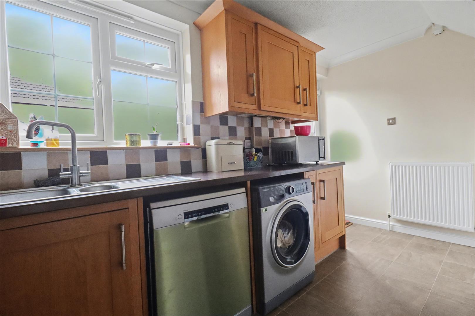 Tiled flooring, wall & base units, integrated oven with 4 ring gas hob with extractor over, integrated dishwasher, spaces for washing machine & fridge freezer, window to rear, under-stair storage cupboard, door leading to rear garden