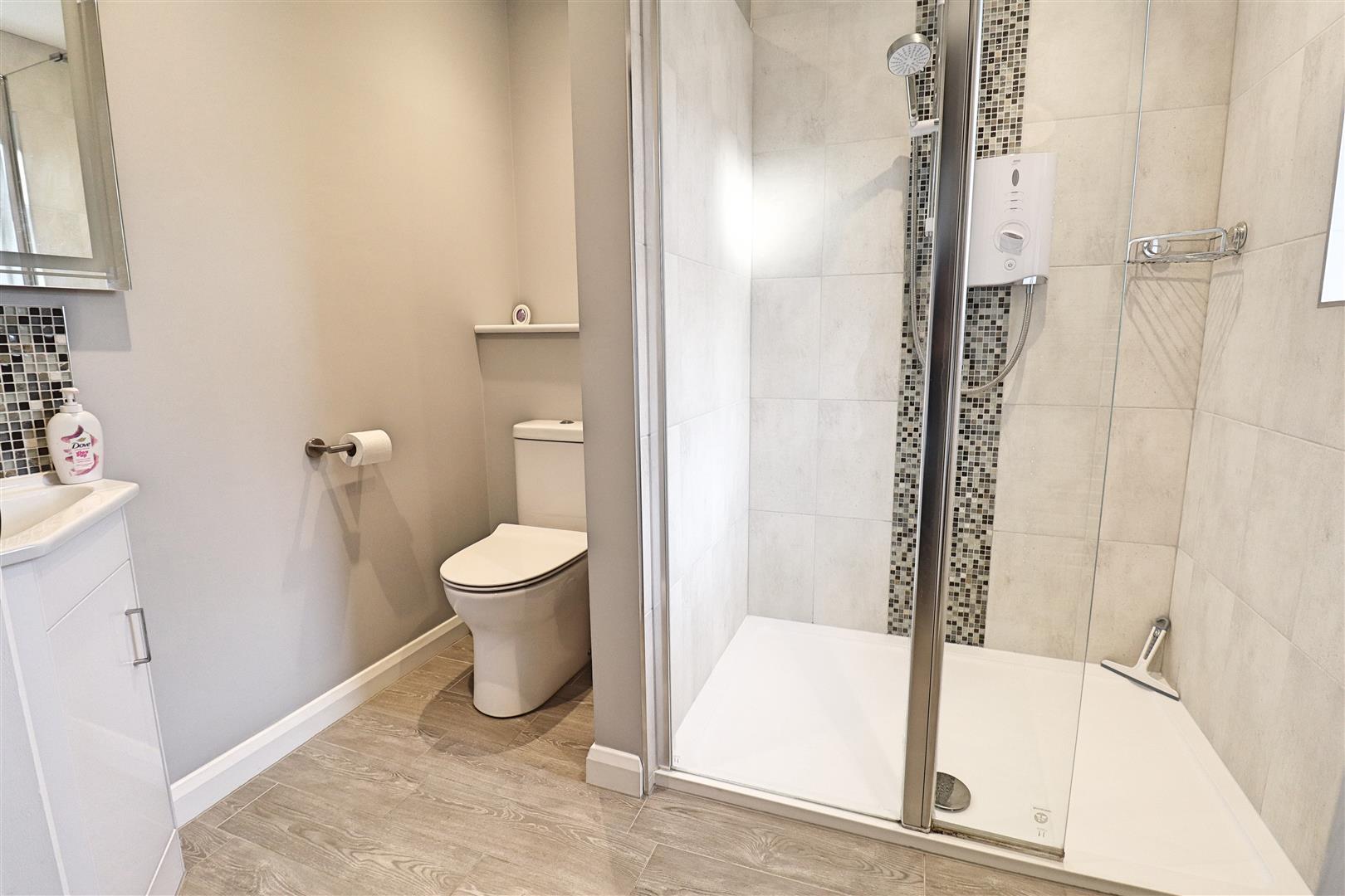 Walk in shower, WC, hand wash basin