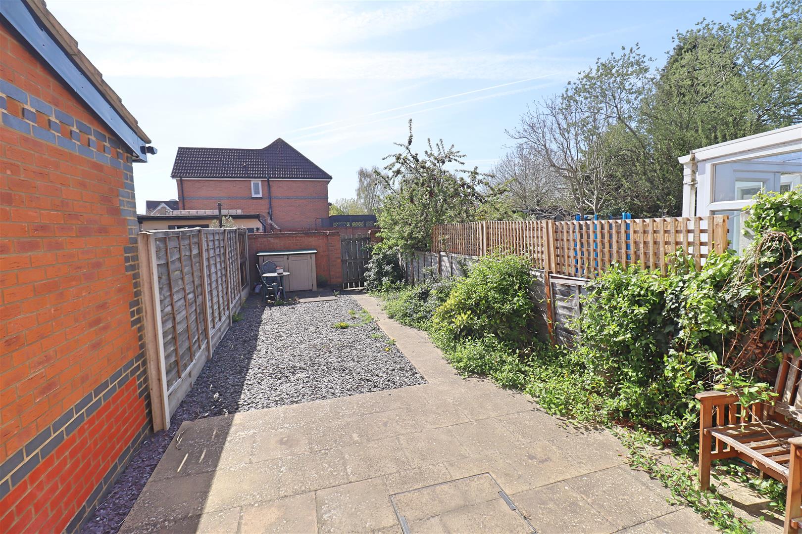Paved patio area leading to low maintenance garden laid with stone shingle & mature borders. Rear access gate leading to the parking area.