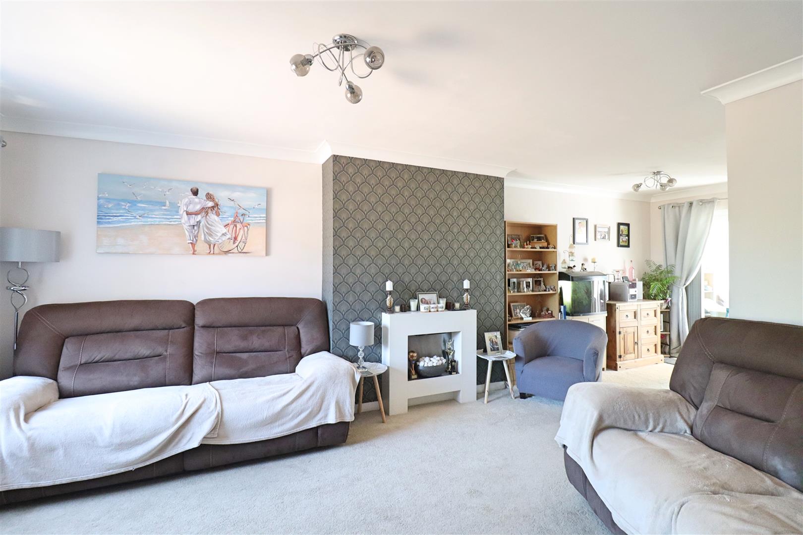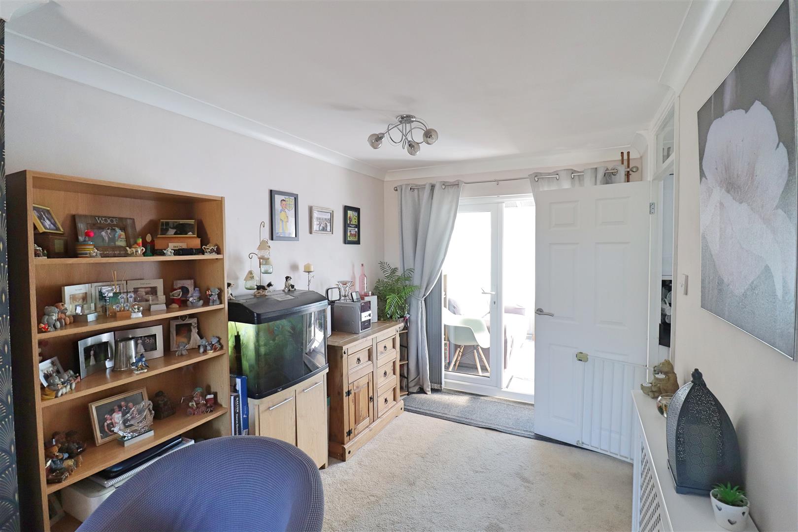 Carpet flooring, UPVC window to front & French doors leading to Conservatory. 2 x radiators, under stairs storage cupboard. Door to;