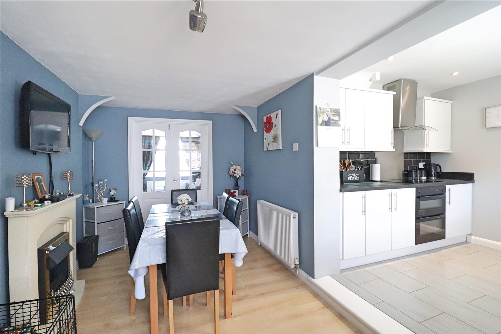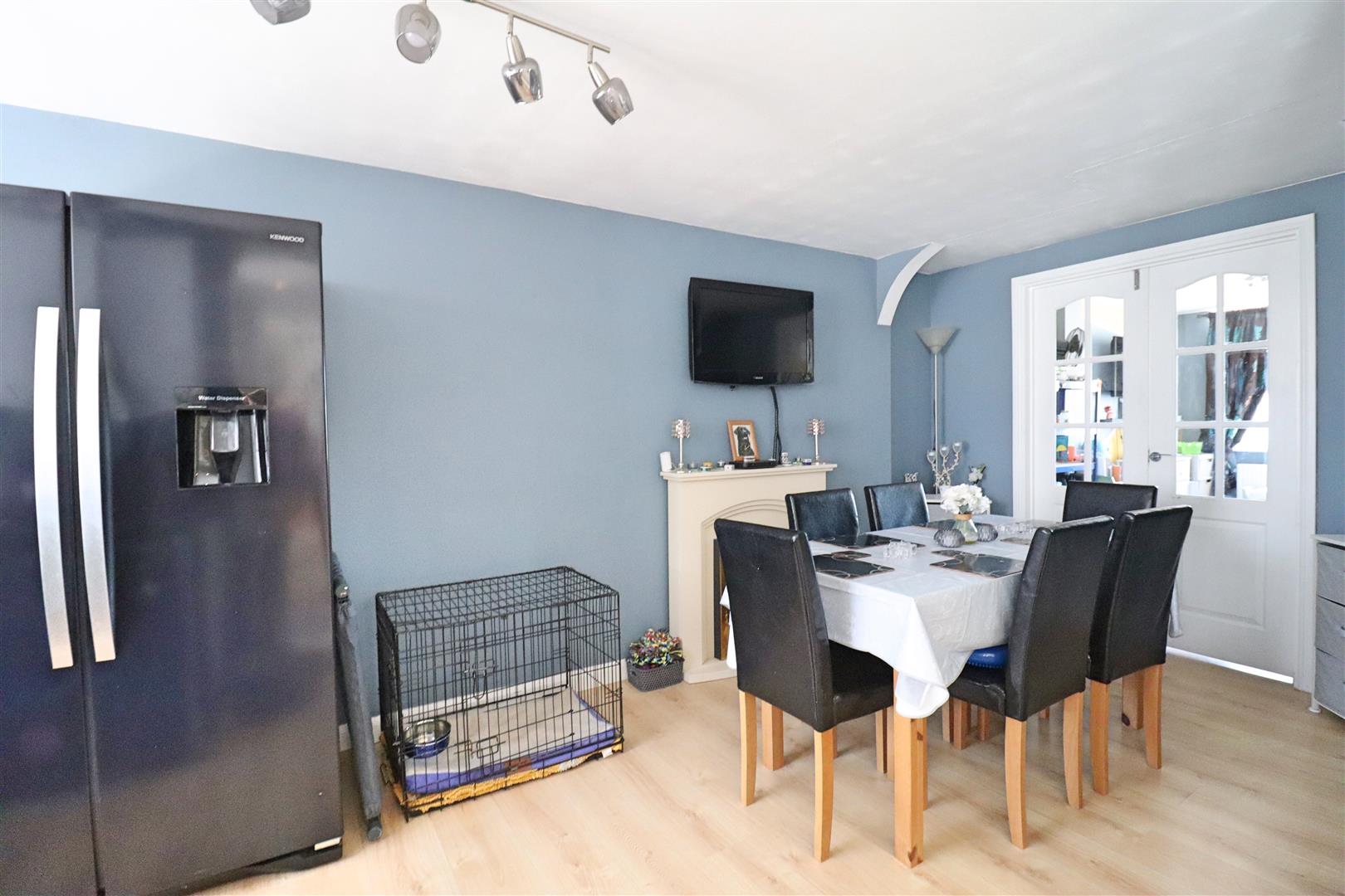 Laminate wood flooring. UPVC window to rear, radiator, space & plumbing directly to the rear of the room for washing machine and fridge/freezer. French doors to;