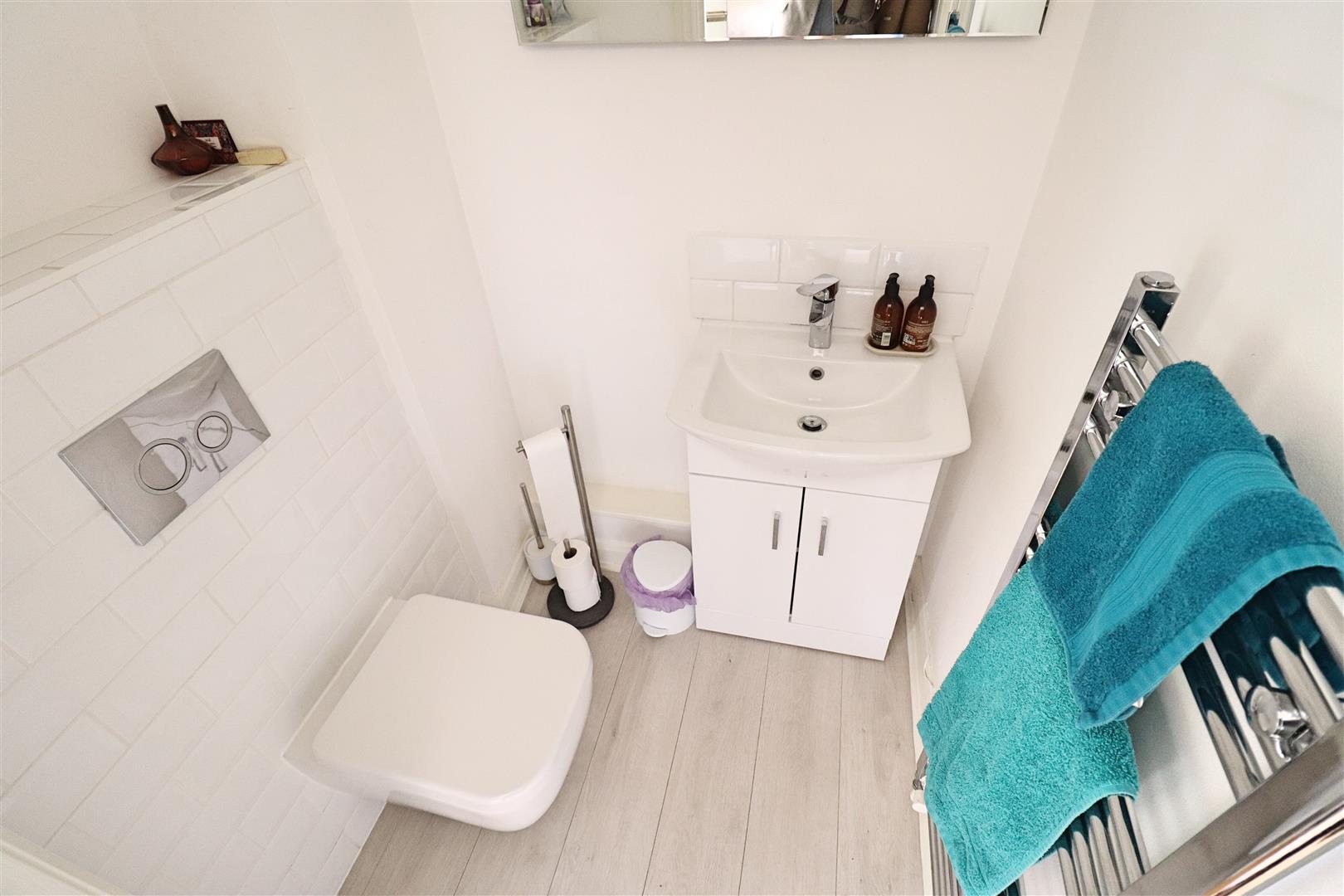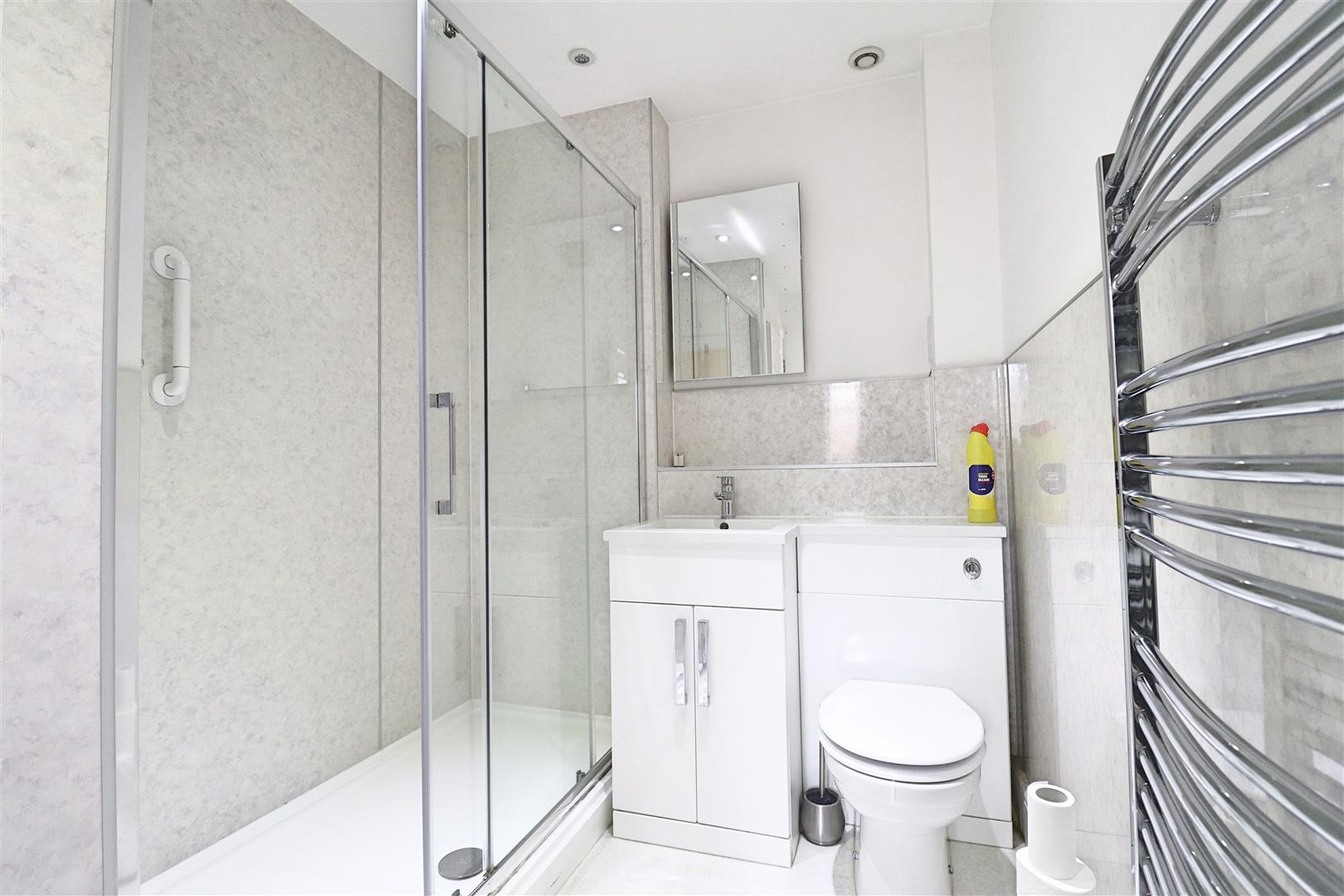 Walk in shower, WC, hand wash basin inset to vanity unit, heated towel rail