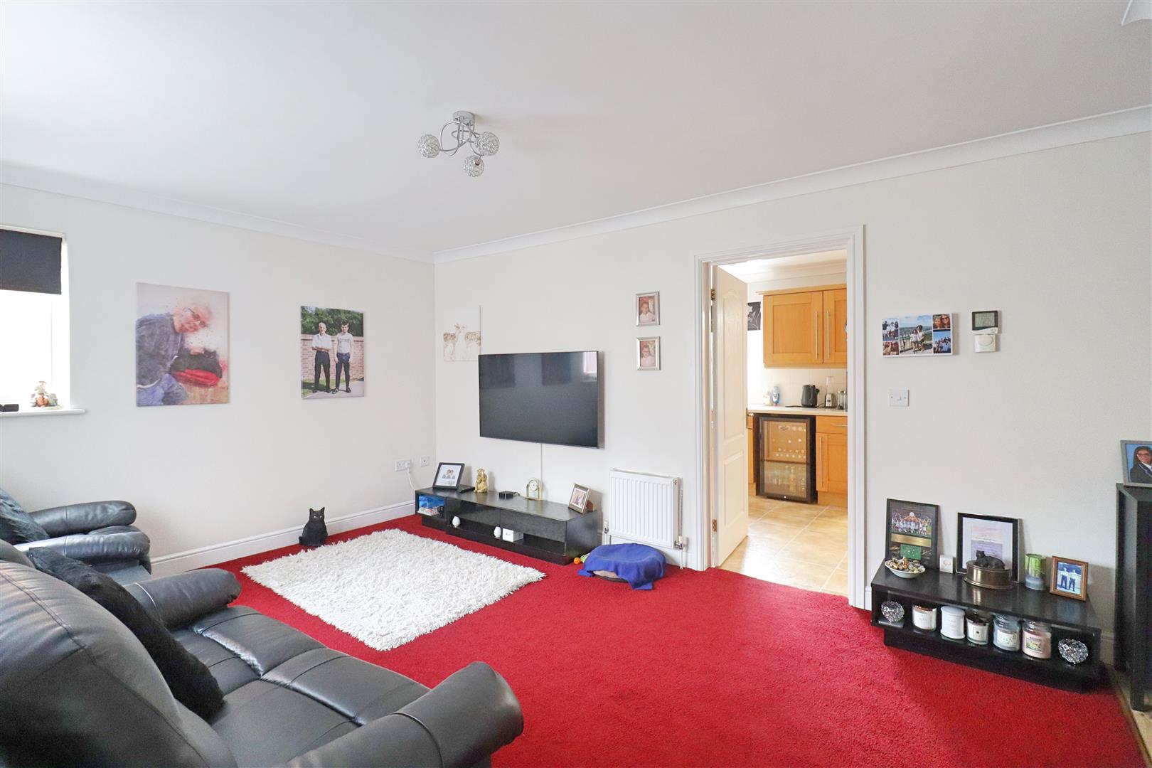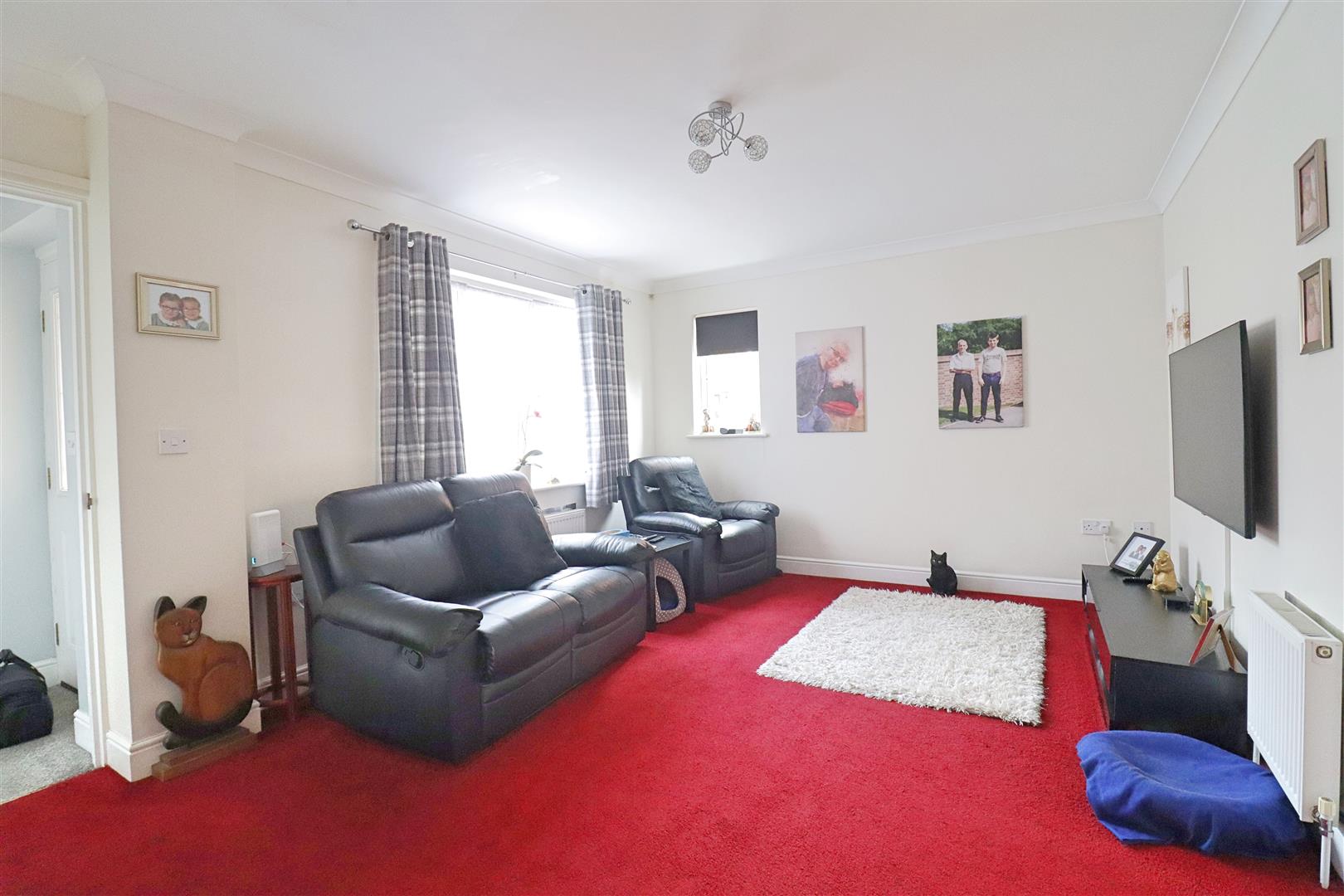 Carpet flooring, double glazed window to front, TV point, door leading to Kitchen/Diner, under stairs storage cupboard.