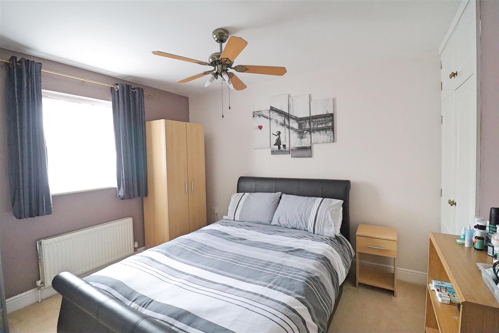 Fitted cupboard, carpet flooring, double glazed window to front