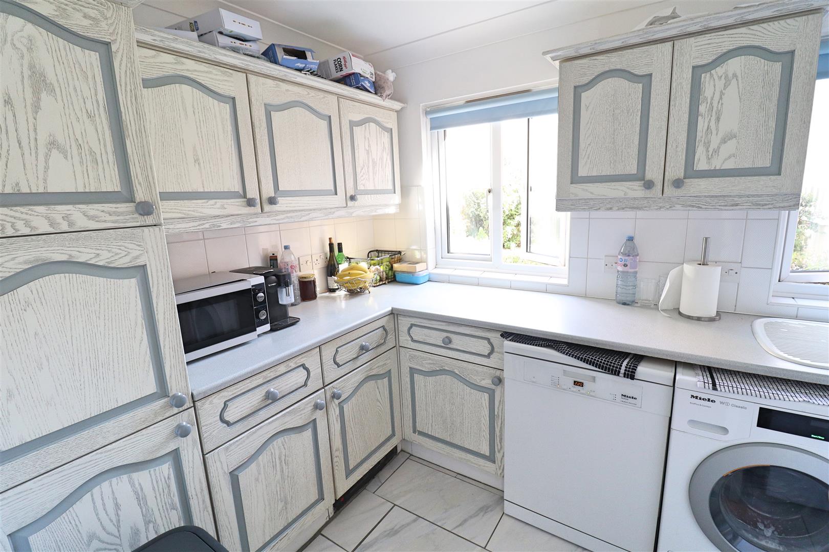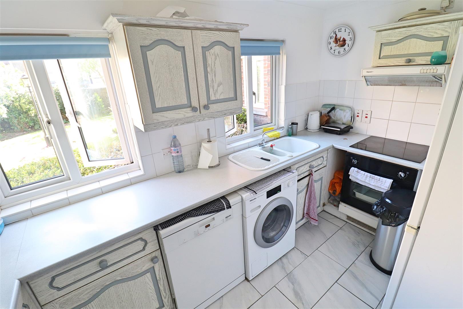 Tiled flooring, wall & base units with roll top work surfaces, one & a half sink with mixer tap, integral oven & hob with extractor over, spaces for washing machine & dishwasher, two double glazed windows to rear.